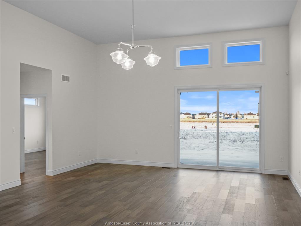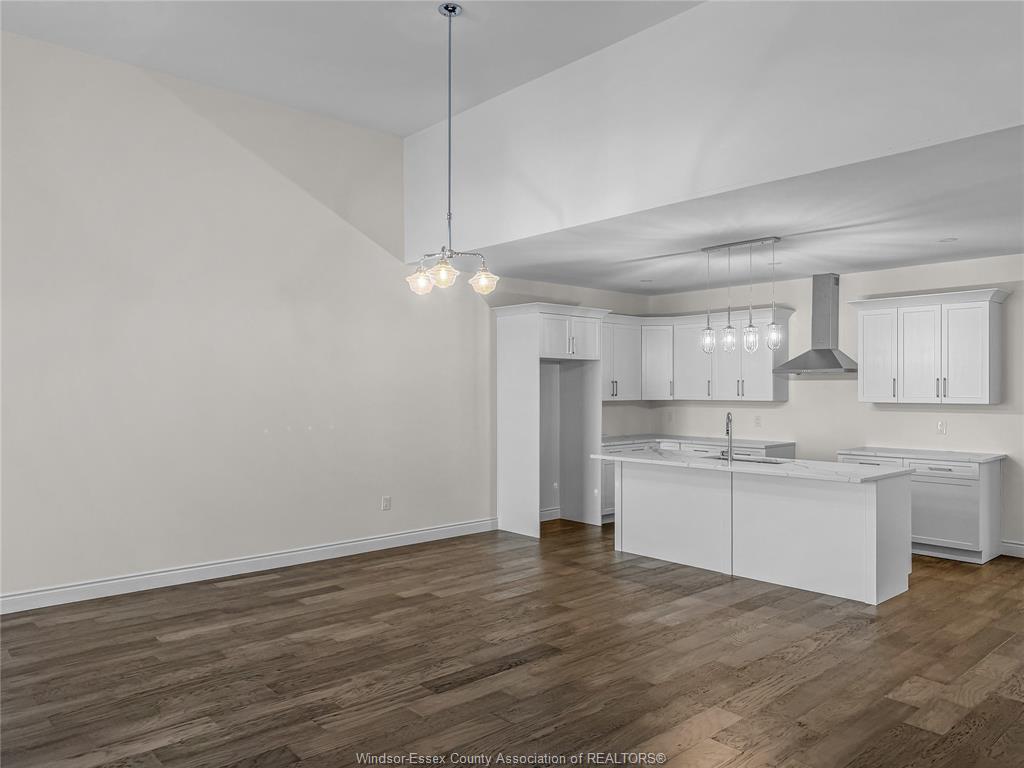 This large, brand new semi detached ranch home is located in one of Amherstburg’s most desirable neighborhoods. Approx. 1550 square feet. Beautifully crafted and never been occupied, it offers refined, modern living throughout. Featuring 2 spacious bedrooms and 2 elegant bathrooms, including a primary suite with private ensuite, plus convenient main floor laundry. The open concept kitchen is designed for both style and function, showcasing a large island, premium cabinetry, and a sophisticated dry bar area ideal for entertaining. Soaring ceilings and expansive windows bathe the home in natural light. Complete with a 2 car garage and a 2 car driveway. Exceptionally built by reputable builder Everjonge, this home is perfectly suited for those seeking luxury, comfort, and low maintenance living.