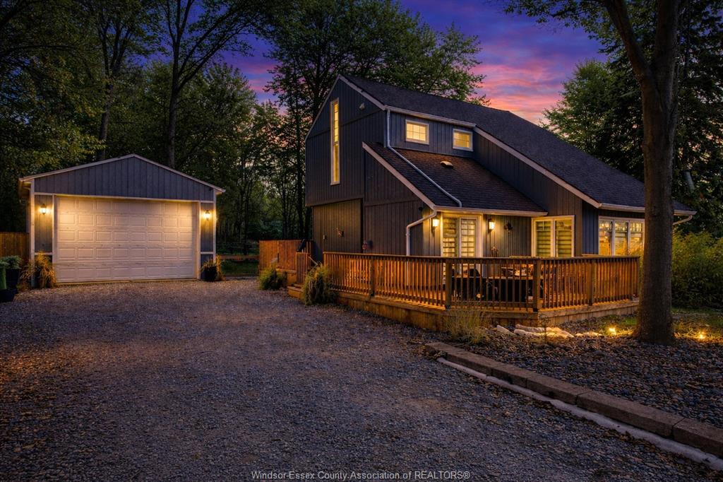This home is a complete standout blending the character of a 1.5 storey layout with a modern, airy feel. The combination of a deep lot backing to woodland and beach access just a short stroll away makes it feel like a year round vacation retreat. Step outside on the expansive wrap-around deck, ideal for morning coffee or hosting summer bbq's. Property offers ultimate privacy w/fully fenced yd. "No" rear neighbours just "Nature". Main floor Features kitchen, dining area, sunken living room w/cozy gas fireplace, full bath, laundry & bedroom. 2nd Floor has a full bath, 2 more bedrooms. Vaulted ceilings & more. There is a 19' x 28' detached 2 storey high garage. Ideal for the Hobby Mechanic.
