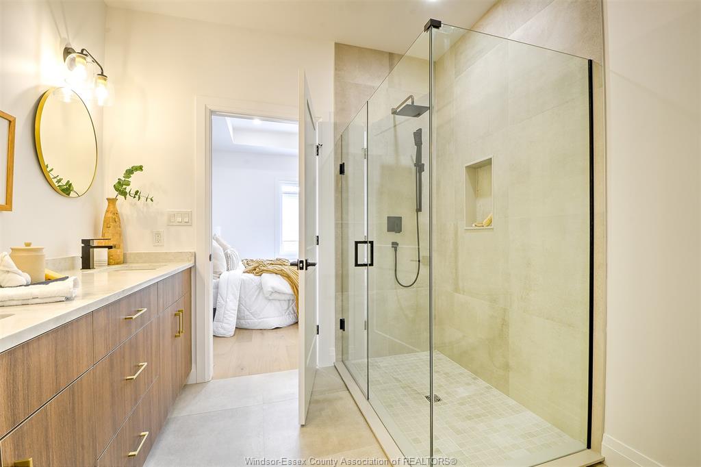 FP, large covered rear porch, concrete drive, HRV, glass shower ensuite, walk-in, finished double garage,