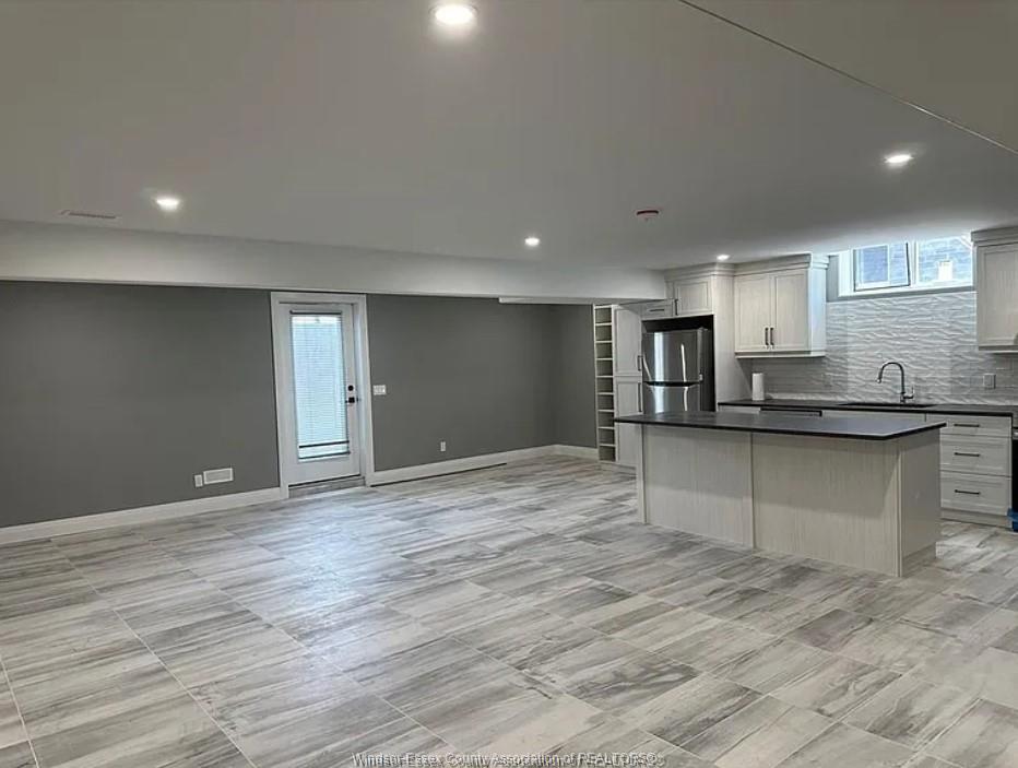 ** open concept kitchen, Living and dining. ** Stainless Steel appliances & gas fireplace. ** Grade entrance at