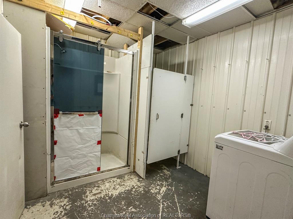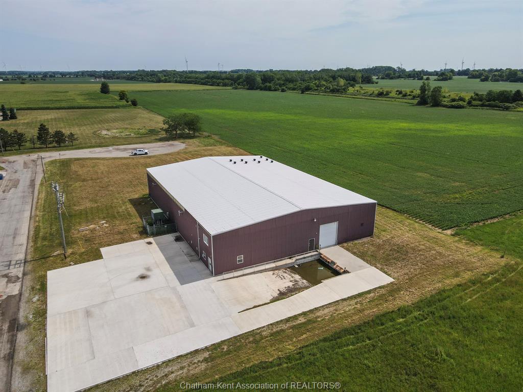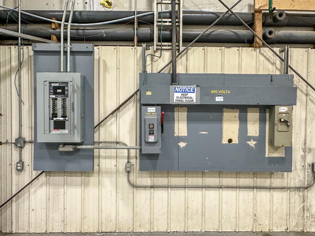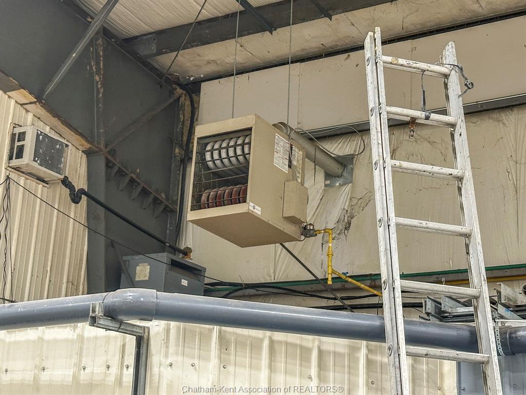 14,000 square foot building in Blenheim's industrial park with General Industrial zoning. 1.73 acre lot. Quick access to Highway 401. The main clear span area has a max width of 98 feet and a max depth of 119 feet, totalling approximately 10,700 square feet with a max height of 22'9". 23' wide loading dock, two 12'x14' foot overhead doors. Large indoor storage area with a 2nd floor mezzanine. Reception area, 2nd floor office and conference rooms, break room with a kitchen, 3 bathrooms. 88'x70' concrete parking area. 2 overhead gas furnaces. 600 volt hydro. Updated LED lighting in the main area. The building is located at the west end of the lot, providing a large outdoor storage space to the east of the building. Offered at $9/sqft annually, triple net. Call now for more information or to arrange a viewing.