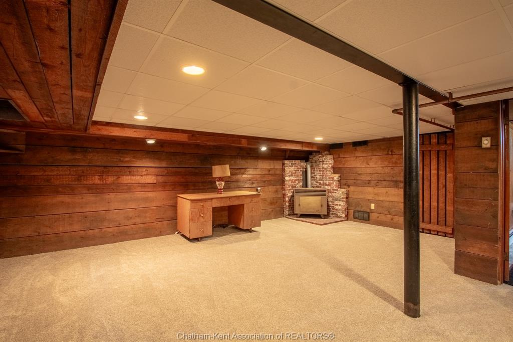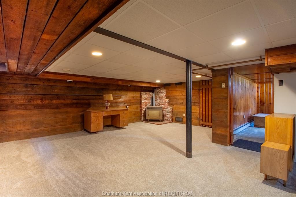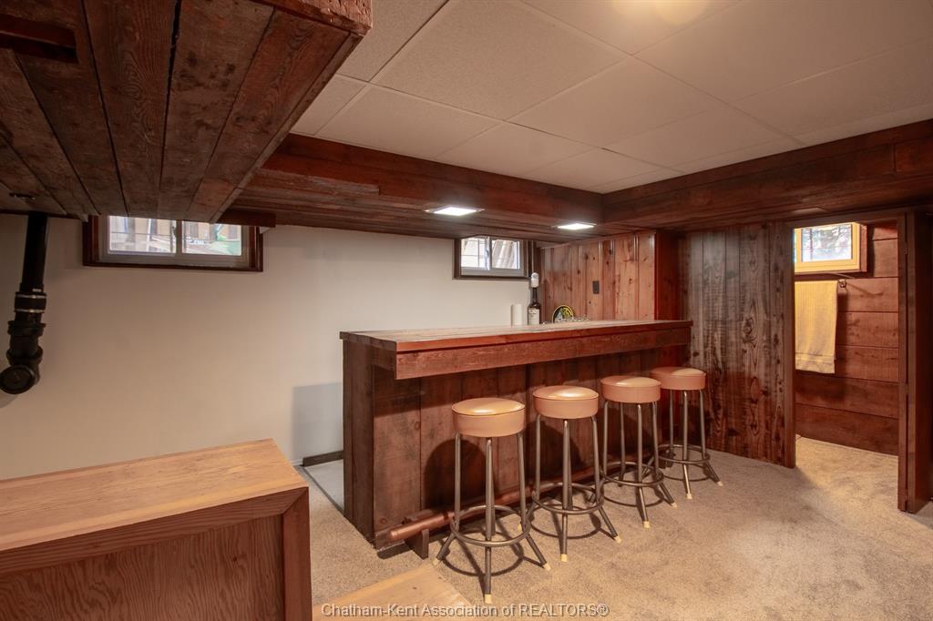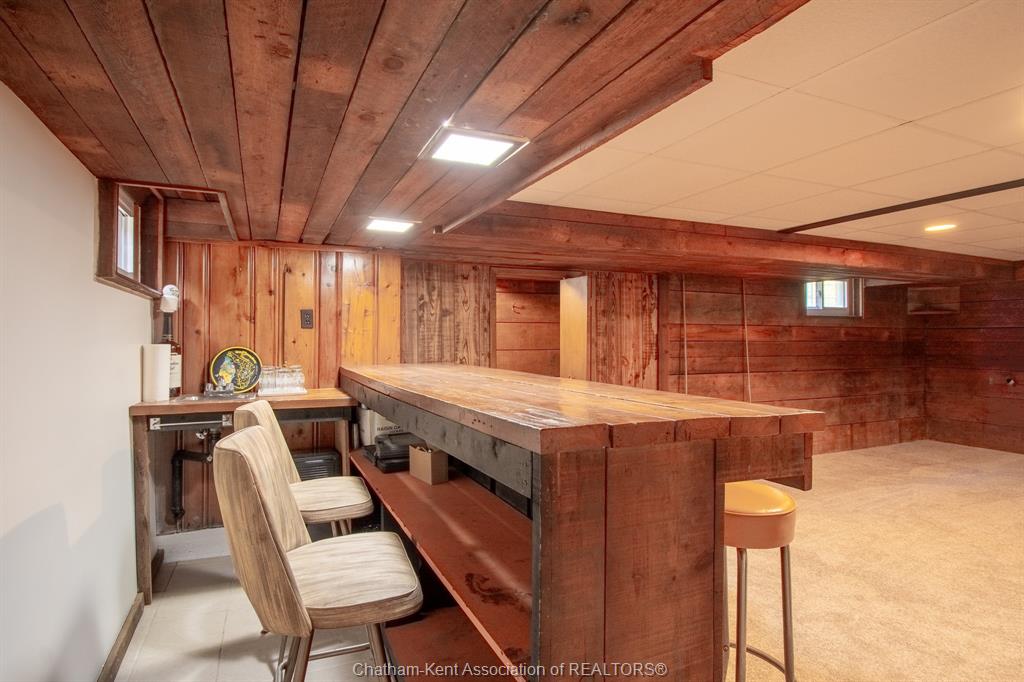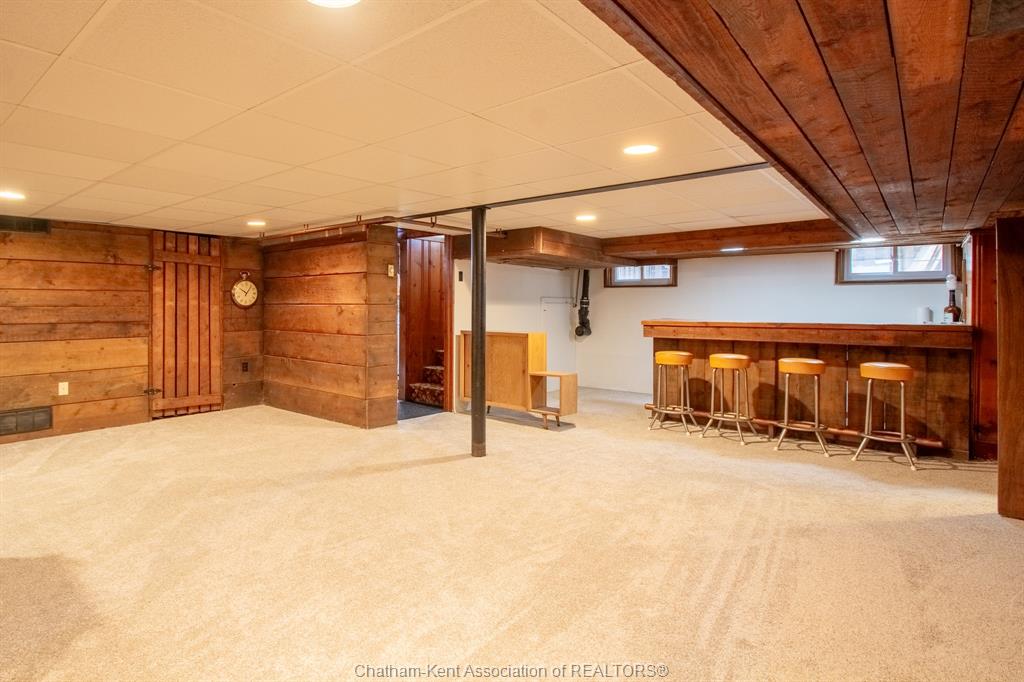 The basement continues the home’s character with a spacious family room and bar area—perfect for entertaining or relaxing.