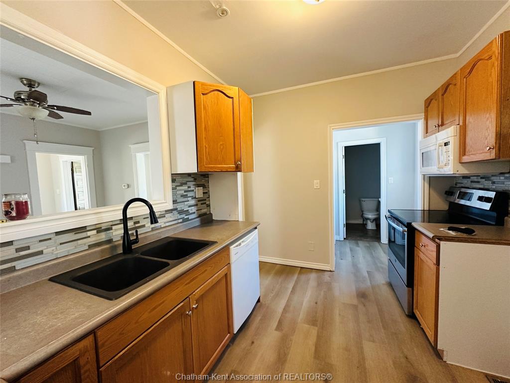 Step into this inviting 2-storey home that blends timeless character with a few modern touches—perfect for families looking to add their own style and vision. The home features a fresh coat of paint throughout and new smooth flooring on both levels, offering a clean slate to work from. The main floor includes a functional galley kitchen that opens to a large dining room—ideal for family dinners or casual get-togethers. The bright and spacious living room is filled with natural light, while the front sunroom adds a cozy space to relax with a morning coffee or unwind at the end of the day. A handy 2-piece bath and back mudroom complete the main level. Upstairs, you’ll find three bedrooms and a full 4-piece bath, ready for your finishing touches. The basement houses the laundry, mechanicals, and plenty of storage space. Outside, the fenced yard offers a private space with room for gardening, or outdoor entertaining. The detached single-car garage provides additional storage or workshop potential. With its blend of older charm, recent updates, and endless possibilities, this home is ready for someone to bring their creativity and make it truly their own.
