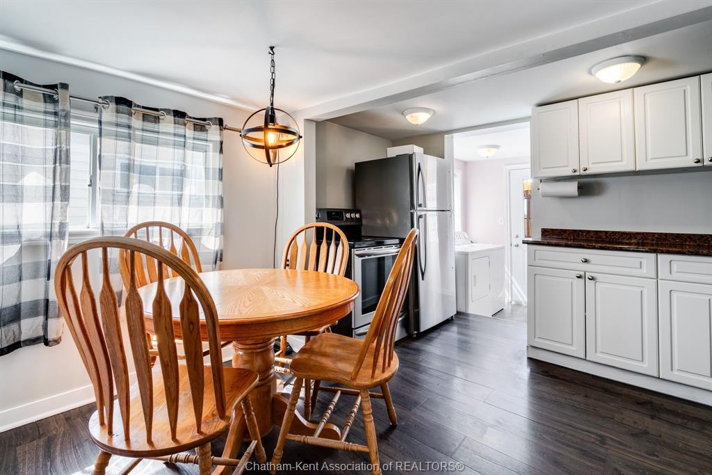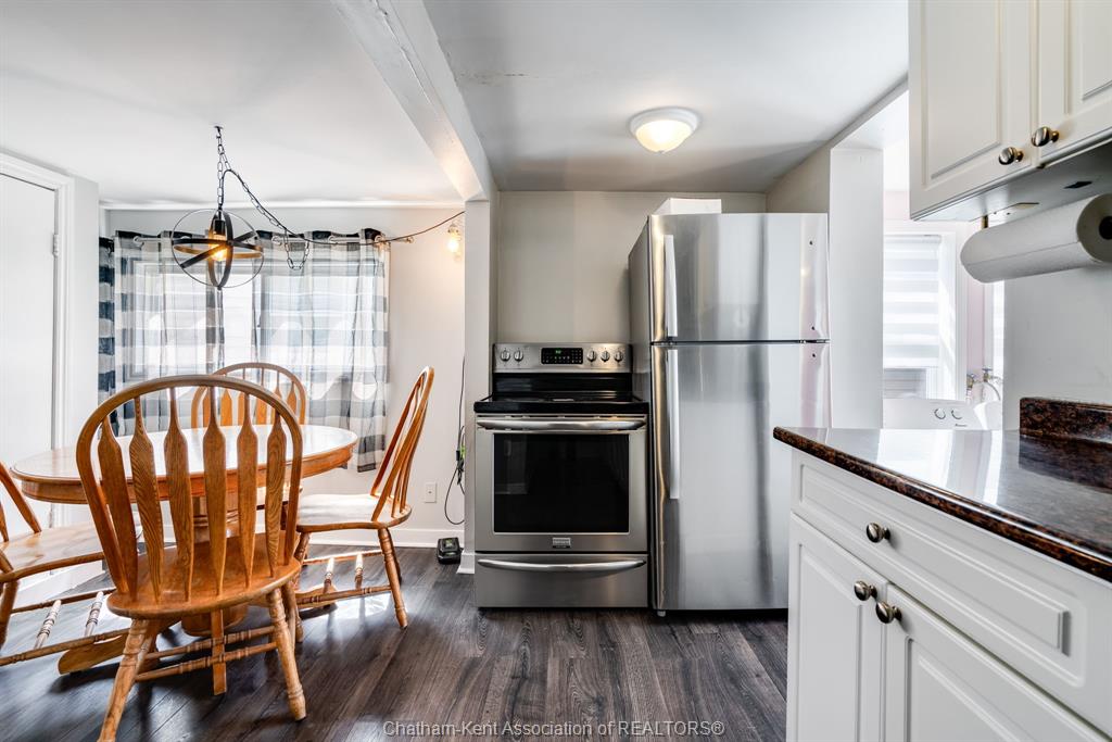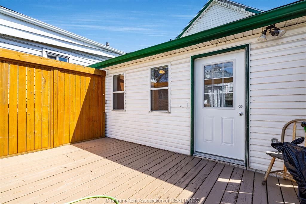 Enjoy immediate possession in one of Chatham's most affordable vacant home's! This 2 bedroom home features cozy enclosed front porch, spacious living room, eat-in kitchen, full bath & main floor laundry. Appliances are included! The bedrooms are located upstairs, nice size primary bedroom. The fully fenced rear yard is the prefect place for relaxing and enjoying your summer, the deck features privacy fencing. appliances included! Would make a great starter home for someone looking to enter the market or a great investment property! At this price you don't want to miss out! Call today for your personal viewing!