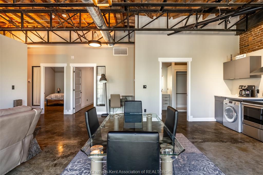 Now available—this newly remodelled industrial-modern 2-bedroom, 2-bath apartment sits in the heart of downtown Chatham. Bright and spacious with large windows and an open-concept layout, it blends comfort with contemporary style. The primary bedroom offers a private en suite, while the second bedroom is perfect for guests or a home office. Enjoy in-unit laundry, elevator access, and the convenience of gas and water included in rent. Storage is available, and parking can be arranged at an additional cost, in the adjacent lot. Steps from shops, dining, and transit—experience modern urban living at its best. Available immediately with a 1-year lease.