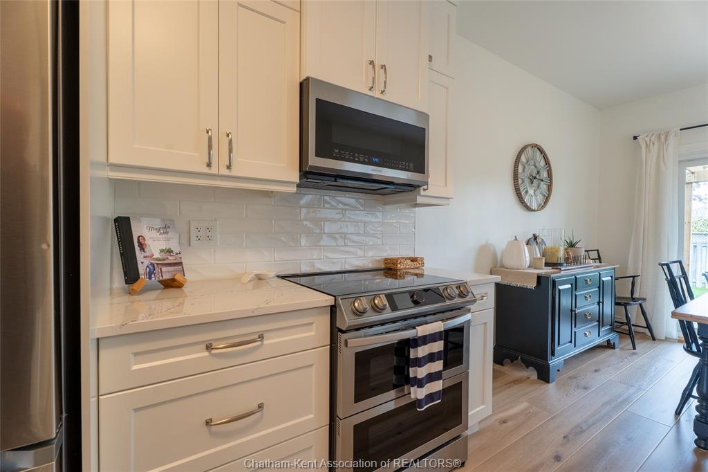 Newer stainless steel appliances fridge, stove, dishwasher, microwave, all window coverings, all light fixtures, Hot water tank owned, garage door opener and remotes, Generac generator, newer furnace and central air, central vac and attachments, washer and dryer. Driveway