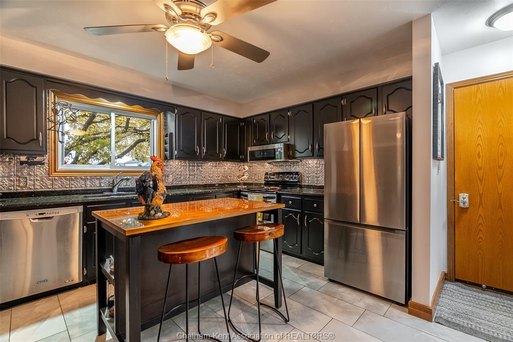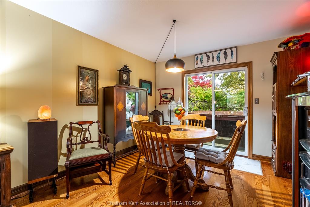 Tucked away on a quiet maturely landscaped pie shaped lot, in one of Chatham’s most sought-after school districts, this lovingly maintained home has been cherished by the same owners for 34 years — and it shows. Step inside and feel the warmth of hardwood floors, a cozy gas fireplace, and sun-filled living spaces that instantly feel like home. The updated kitchen features sleek black cabinetry, stainless steel appliances, and a center island perfect for morning coffee or evening catch-ups. Upstairs you’ll find 3 comfortable bedrooms and 1.5 baths, while the private backyard is your hidden retreat — complete with a hot tub, mature landscaping, and no rear neighbours. A single attached garage plus a detached shop offers space for hobbies or storage, and the pie-shaped lot means extra room to breathe. Pride of ownership lives here — ready for its next chapter. Call today to #lovewhereyoulive