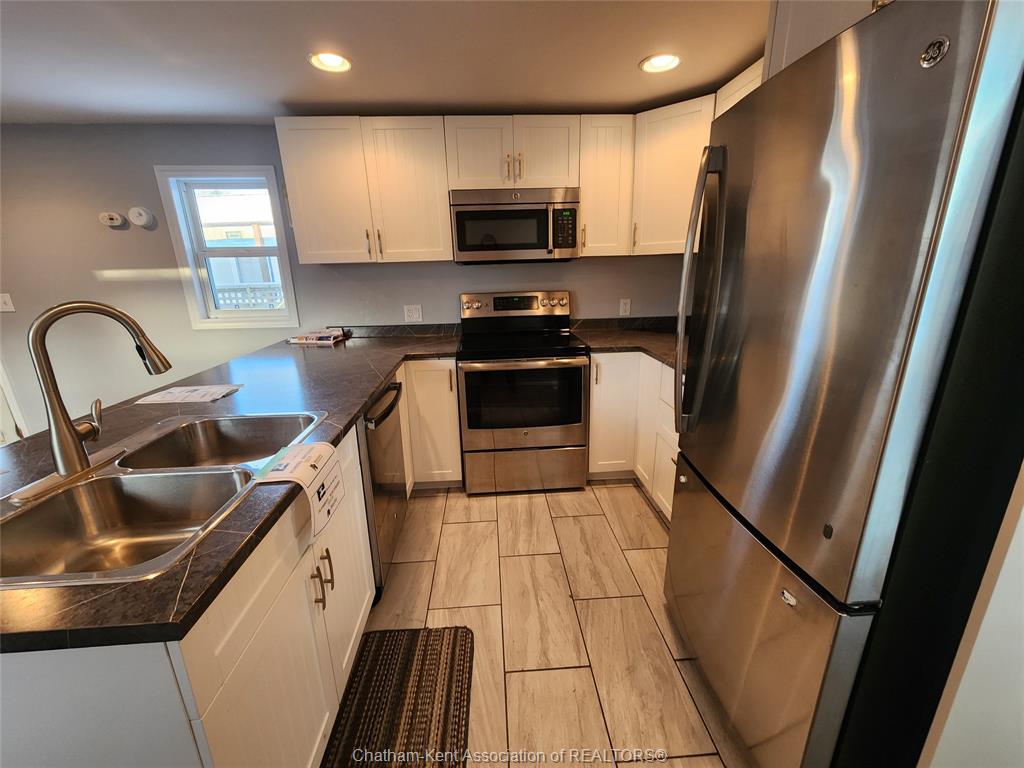 Welcome to this affordable 2-bedroom mobile home located in the desirable St Clair Estates community. Backing, onto peaceful greenspace, this home offers comfort and low-maintenance living. Step inside to a bright and airy open-concept layout featuring a spacious living room, dining area and updated kitchen with shaker-style cabinets and a convenient peninsula. The generous 4-piece bathroom and two sizable bedrooms are located at opposite ends of the home, providing privacy and funcitionality. A laundry closet with space for a stackable washer/dryer and an on-demand hot water unit adds everyday convenience. Enjoy the benefits of park living with a land lease of $537/month for the new buyer, which includes lot fees, taxes, garbage and recycling pickup and snow removal on main roads. Park approval is required for all new owners. ** Seller will not respond to offers before DEC 1/25. Allow 72 hrs irrevocable. Seller standard schedules to accompany all offers. Buyers to verify taxes, any rental equipment, parking and fees.**