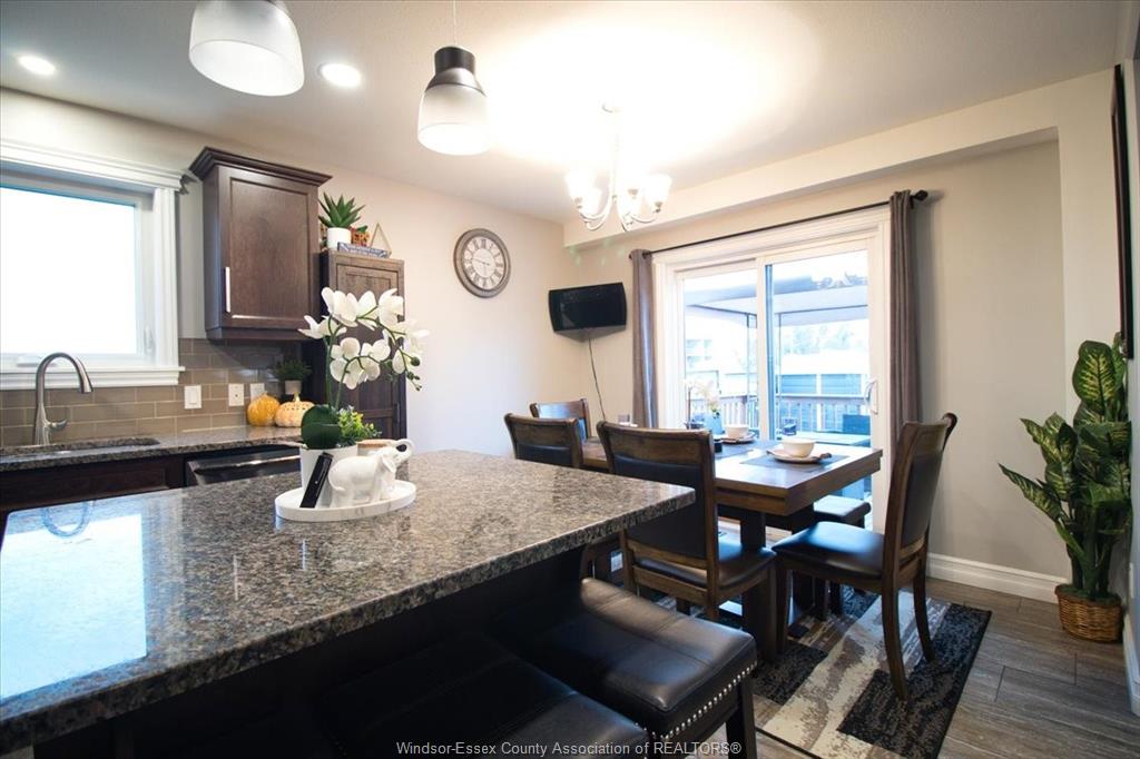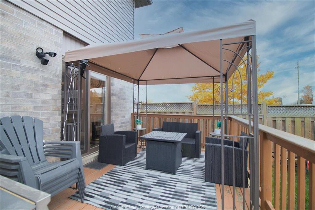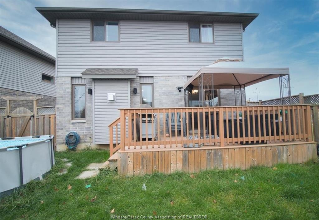 Outside, the fenced backyard is made for family fun, complete with an above-ground pool, spacious deck, and double concrete