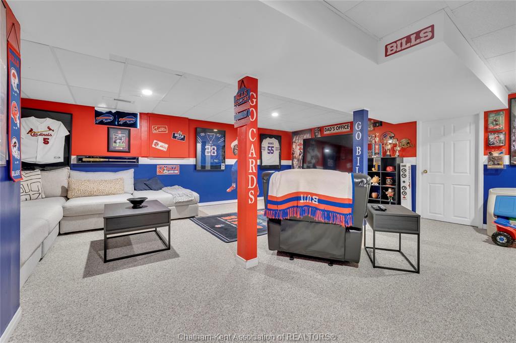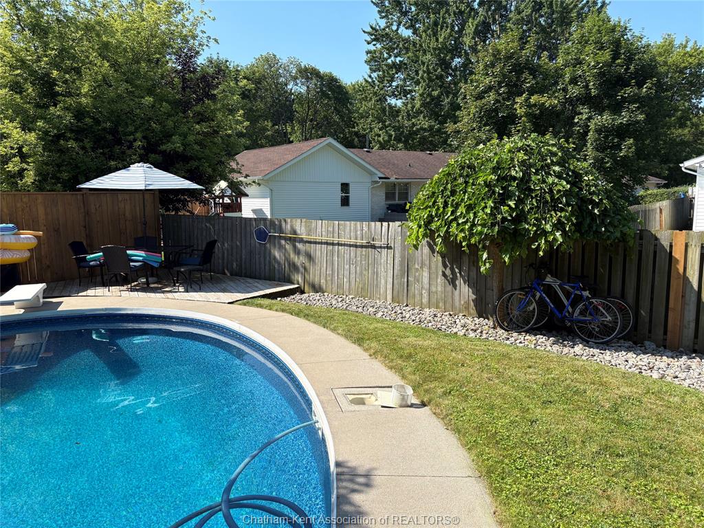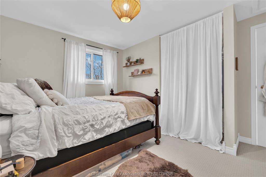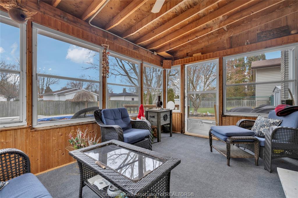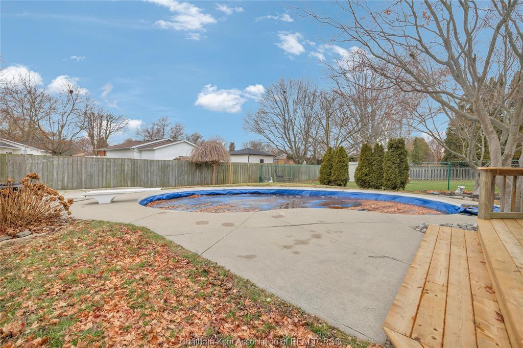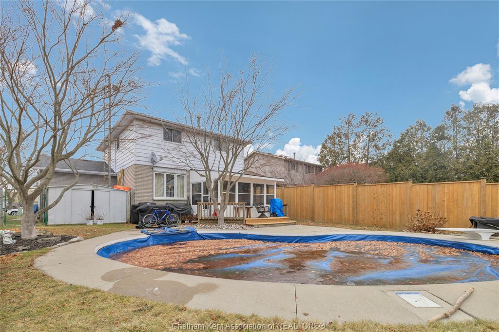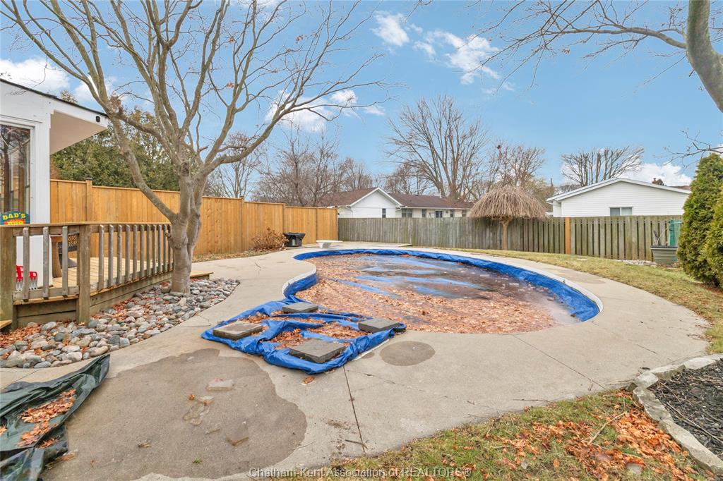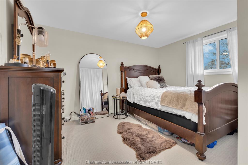 The main floor flows effortlessly, offering a functional eat-in kitchen/dining room with sliding doors leading to the sunroom, which opens to your private backyard oasis complete with an in-ground pool (33 x 17) —perfect for summer entertaining and family fun. Just off the kitchen is a spacious additional room, currently used as a second living area but easily suited as a formal dining room or flex space to meet your needs.Also on the main floor, you’ll find a convenient 2 piece bathroom, interior access to the one-car garage, and access to the fully finished basement. The lower level is thoughtfully designed and full of character, featuring a fun, sports-themed atmosphere that’s ready for game nights, entertaining, or a cozy retreat. Upstairs, the second level offers three generously sized bedrooms and a 4 piece family bathroom, providing comfortable and functional living space for a growing family. Tastefully decorated throughout, located on an exceptionally quiet street, and offering outdoor living with a pool—this home truly checks all the boxes. 74 Bruinsma Avenue is a fantastic opportunity to enjoy family living in one of Chatham’s most sought-after neighbourhoods.