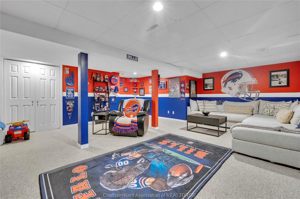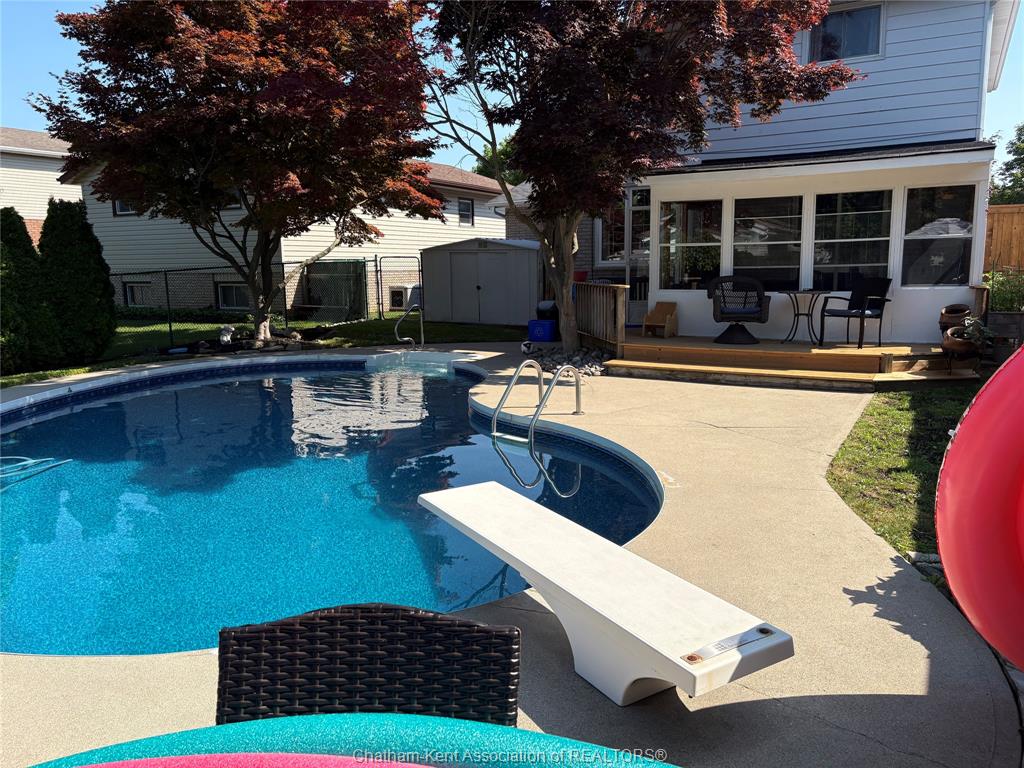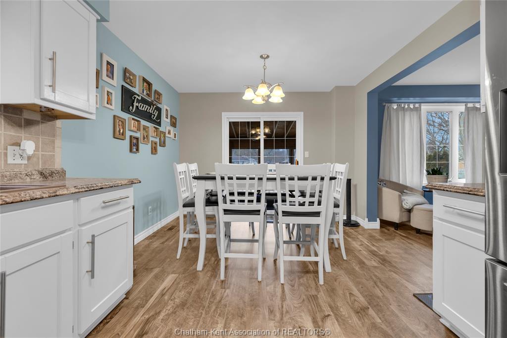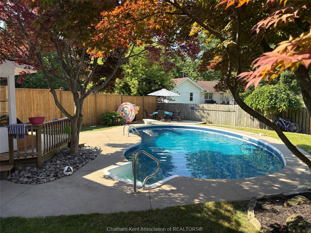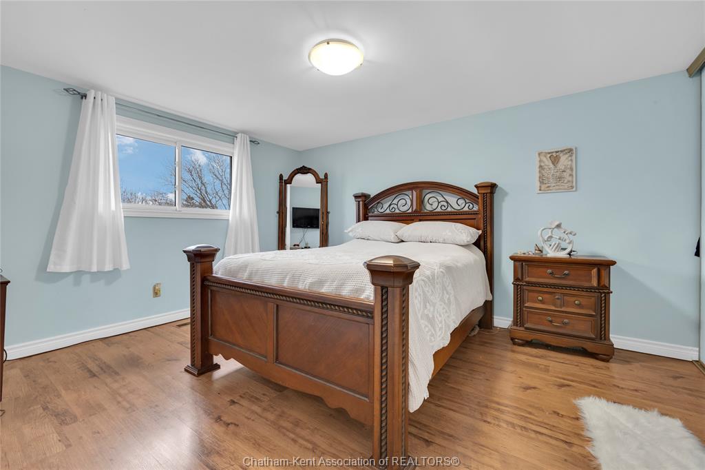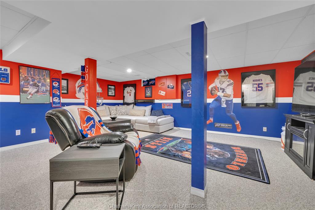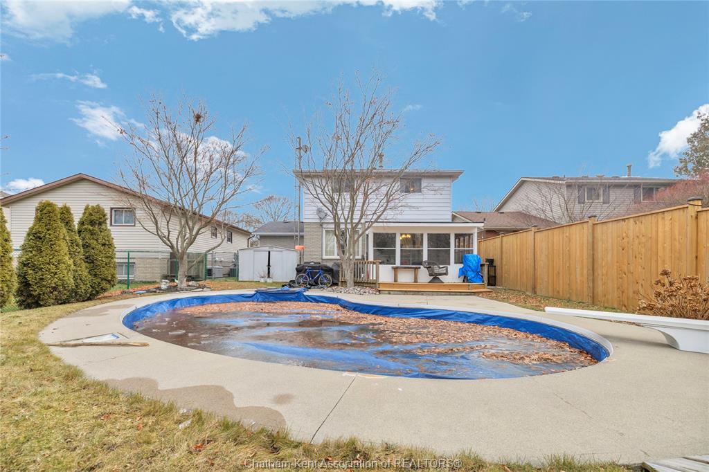 The main floor flows effortlessly, offering a functional eat-in kitchen/dining room with sliding doors leading to the sunroom, which opens to your private backyard oasis complete with an in-ground pool (33 x 17) —perfect for summer entertaining and family fun. Just off the kitchen is a spacious additional room, currently used as a second living area but easily suited as a formal dining room or flex space to meet your needs.Also on the main floor, you’ll find a convenient 2 piece bathroom, interior access to the one-car garage, and access to the fully finished basement. The lower level is thoughtfully designed and full of character, featuring a fun, sports-themed atmosphere that’s ready for game nights, entertaining, or a cozy retreat. Upstairs, the second level offers three generously sized bedrooms and a 4 piece family bathroom, providing comfortable and functional living space for a growing family. Tastefully decorated throughout, located on an exceptionally quiet street, and offering outdoor living with a pool—this home truly checks all the boxes. 74 Bruinsma Avenue is a fantastic opportunity to enjoy family living in one of Chatham’s most sought-after neighbourhoods.