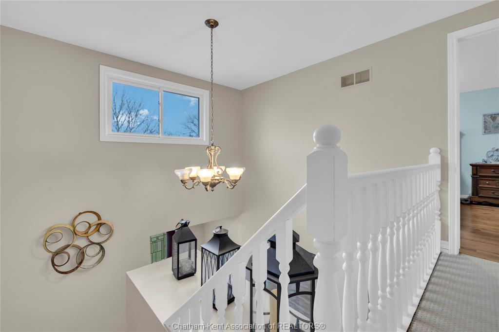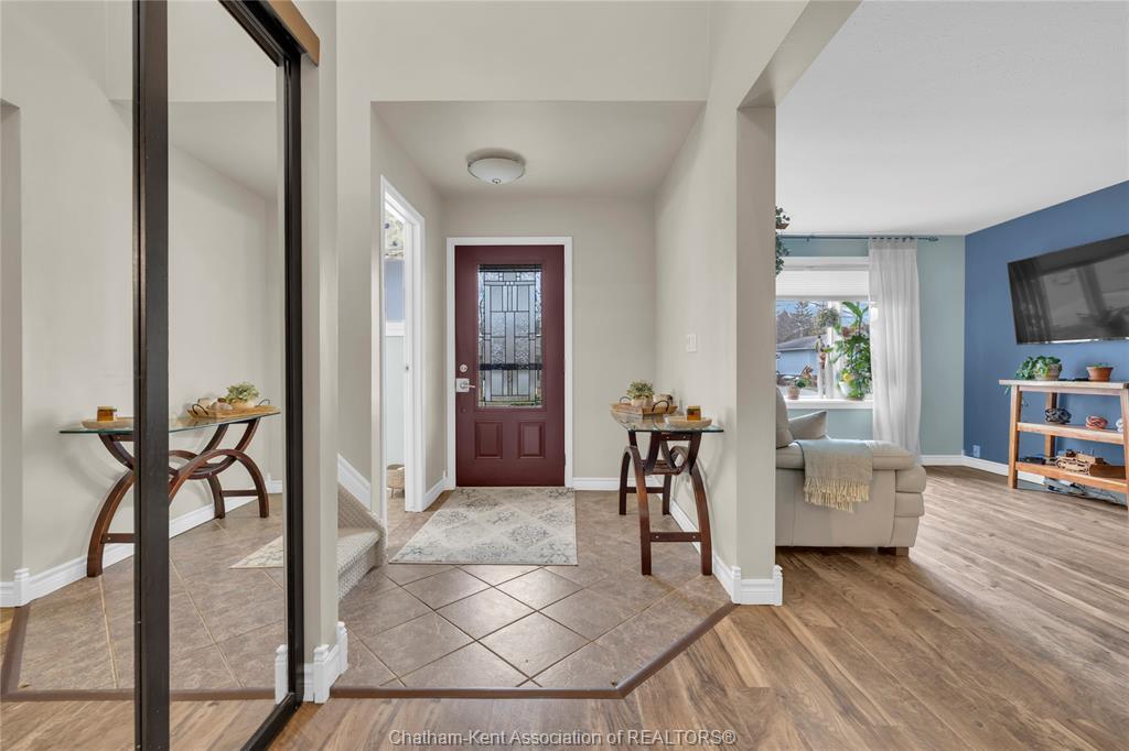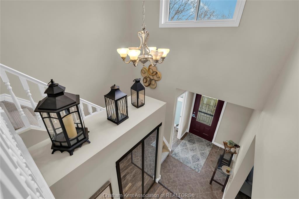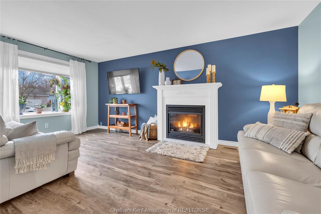 Beautifully maintained two-storey home tucked away on one of Chatham’s quietest and most family-friendly streets. This 3 Bdrm, 1.5 bathroom property offers the perfect balance of peaceful living with convenient access to amenities and quick connections to the 401. Step inside and be immediately impressed by the soaring 20-foot ceilings in the foyer, creating a bright and open first impression. Off the entrance is the front livingroom featuring a gas fireplace and a large window overlooking the quiet street.