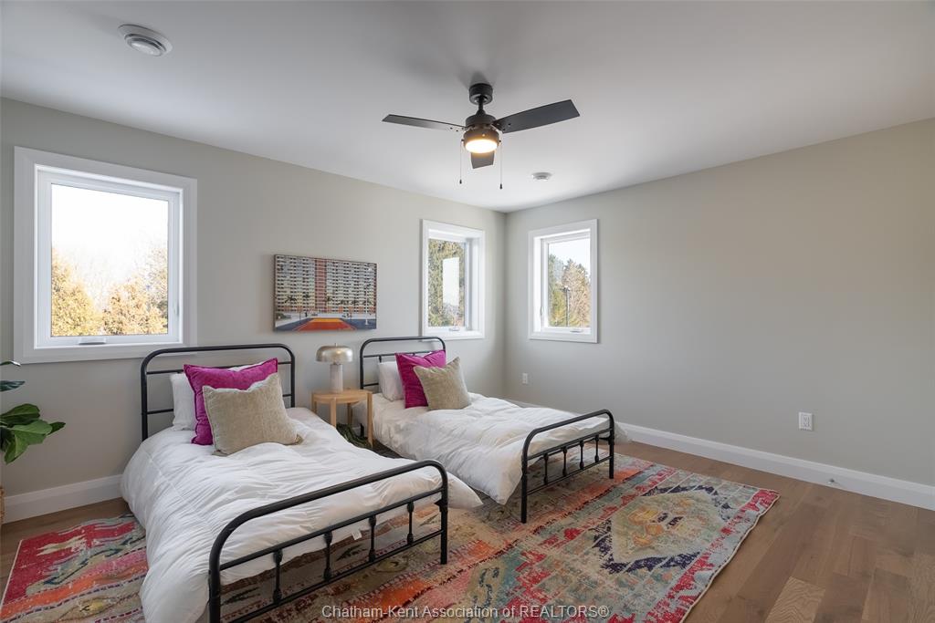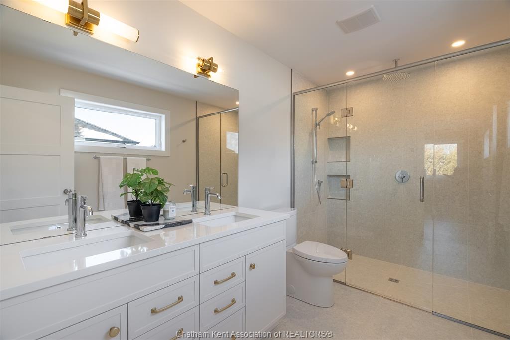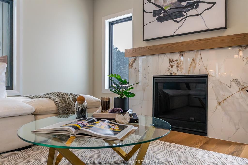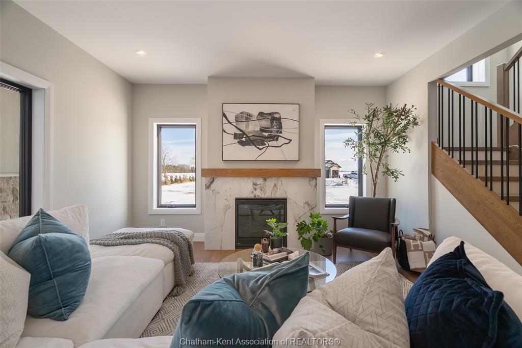 Welcome to this stunning custom-built home by Ewald Custom Homes, where elevated design meets everyday luxury across 2,500+ sq ft of beautifully finished living space. Tucked away on a private, maturely treed lot, this home delivers the kind of privacy people wish they had—without giving up convenience. Located on the south side of Chatham, this sought-after new development is minutes from all amenities, walking paths, and offers quick access to the 401 (because time matters). Inside, oversized windows flood the home with natural light, showing off warm tones, wide-plank hardwood floors, and thoughtfully curated finishes throughout. The open-concept main floor is made for hosting, featuring a statement kitchen with a large island, walk-in pantry, and seamless flow into the dining and living areas. The fireplace anchors the living room—cozy, polished, and undeniably inviting. Upstairs, you’ll find four generously sized bedrooms, including a dreamy primary retreat with a spa-inspired ensuite complete with a glass-enclosed shower and double vanity. 2.5 bathrooms, timeless design, and quality craftsmanship throughout—no corners cut, no details missed.Private lot. Prime location. Custom quality. This one doesn’t just check boxes—it raises the bar. Call today to #lovewhereyoulive