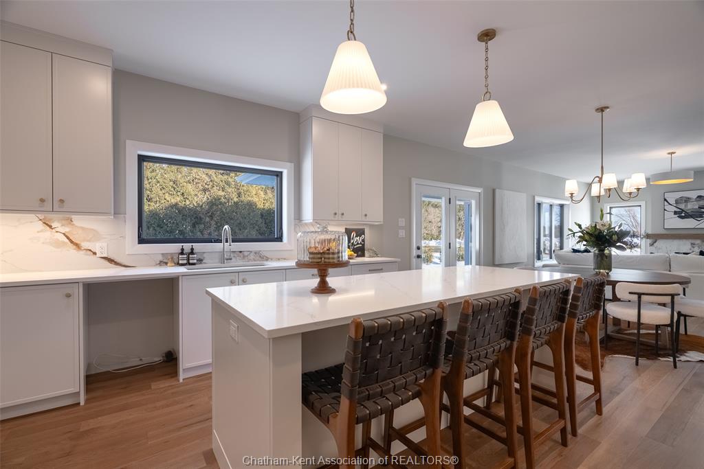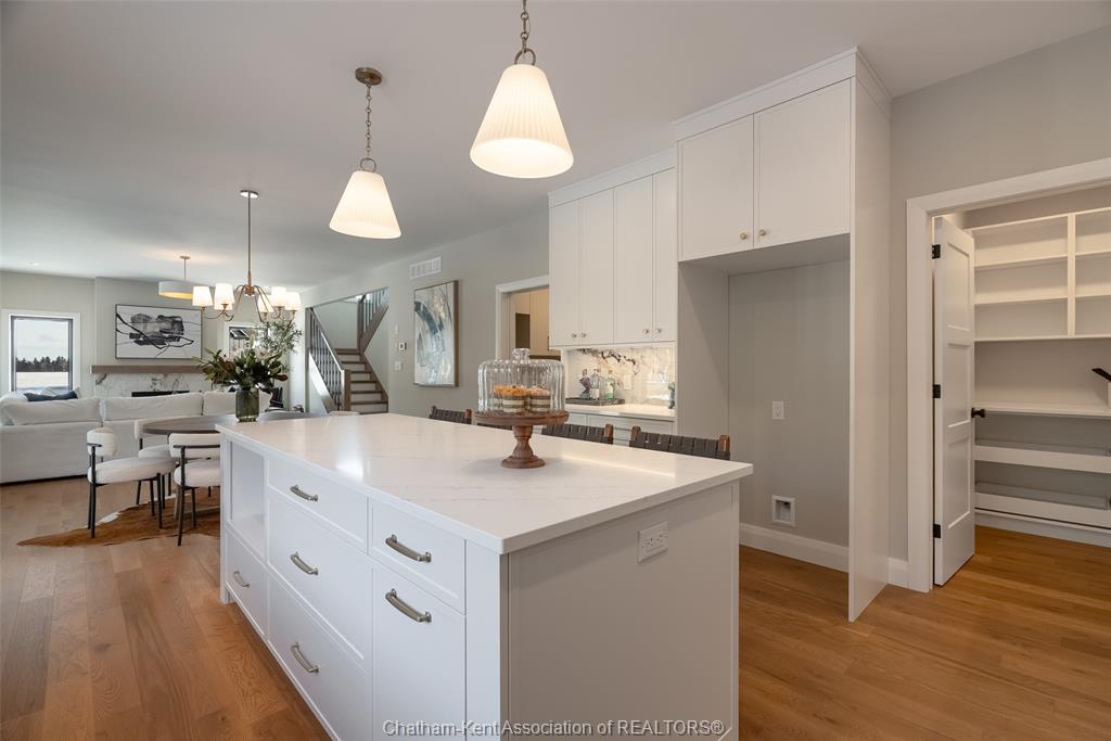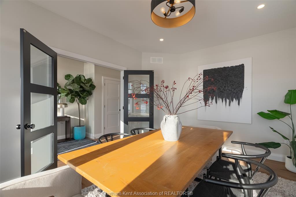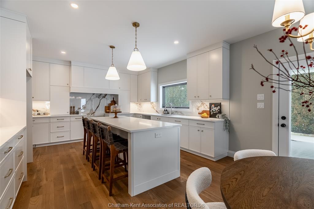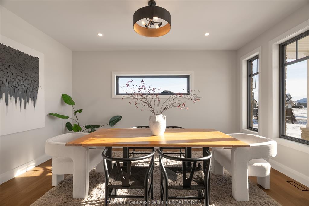 Welcome to this stunning custom-built home by Ewald Custom Homes, where elevated design meets everyday luxury across 2,500+ sq ft of beautifully finished living space. Tucked away on a private, maturely treed lot, this home delivers the kind of privacy people wish they had—without giving up convenience. Located on the south side of Chatham, this sought-after new development is minutes from all amenities, walking paths, and offers quick access to the 401 (because time matters). Inside, oversized windows flood the home with natural light, showing off warm tones, wide-plank hardwood floors, and thoughtfully curated finishes throughout. The open-concept main floor is made for hosting, featuring a statement kitchen with a large island, walk-in pantry, and seamless flow into the dining and living areas. The fireplace anchors the living room—cozy, polished, and undeniably inviting. Upstairs, you’ll find four generously sized bedrooms, including a dreamy primary retreat with a spa-inspired ensuite complete with a glass-enclosed shower and double vanity. 2.5 bathrooms, timeless design, and quality craftsmanship throughout—no corners cut, no details missed.Private lot. Prime location. Custom quality. This one doesn’t just check boxes—it raises the bar. Call today to #lovewhereyoulive