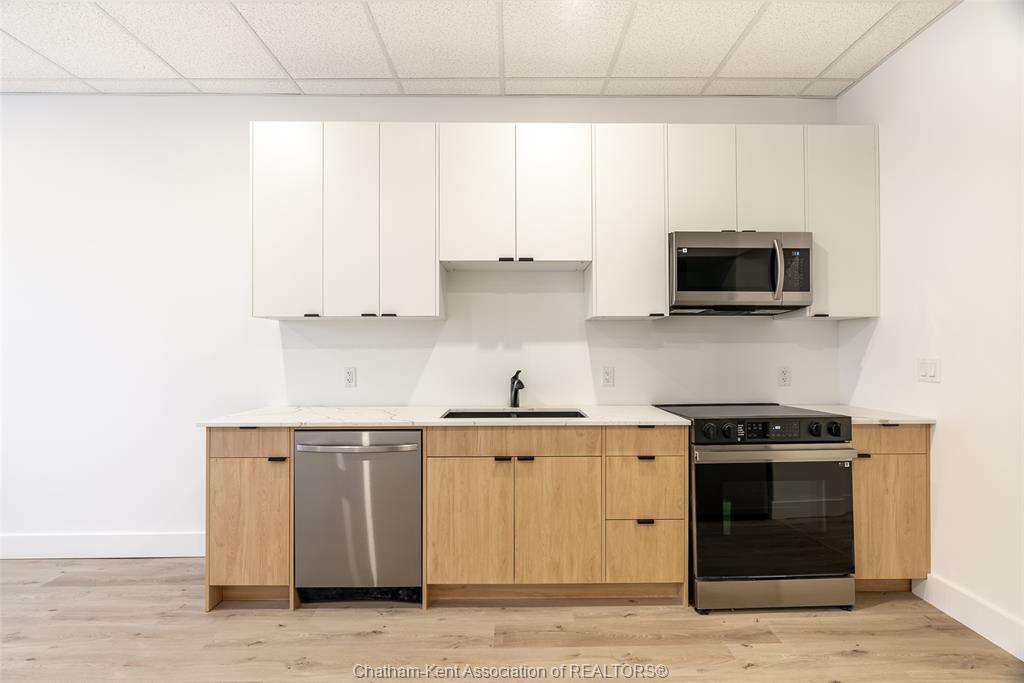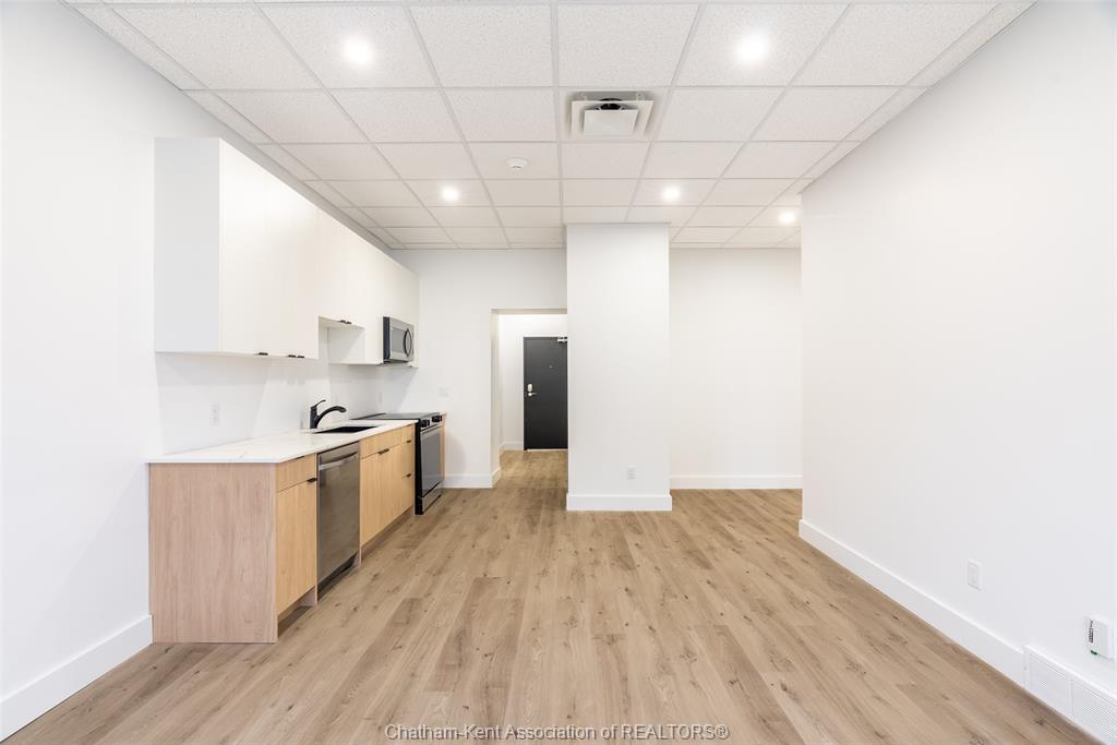Discover upscale living in this newly renovated 2-bedroom, 1-bath luxury apartment located in the vibrant heart of downtown Chatham. With modern design and premium finishes throughout, this elegant suite offers comfort, convenience, and style in one perfect package. Step into a bright, open living space with large windows that flood the unit with natural light. The sleek kitchen features updated cabinetry and appliances, ideal for everyday living or entertaining. The spacious bedroom offers a relaxing retreat, and the contemporary bathroom includes quality finishes and fixtures. Enjoy the added convenience of in-suite laundry and an elevator in the building for easy access. This well-maintained property is perfect for those seeking a low-maintenance lifestyle in a prime location. Just steps from Chatham’s best shopping, dining, and amenities, this apartment puts everything you need right at your fingertips. Whether you’re a working professional or looking to downsize in style, this is downtown living at its finest. Book your private tour today and see the difference luxury makes. Available for immediate possession.