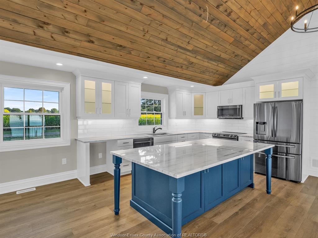 CEILINGS, CUSTOM CREMASCO KITCHEN, QUARTZ COUNTERS, UPGRADED VINYL FLOORING, SHIP LAP WALLS, ALL CUSTOM