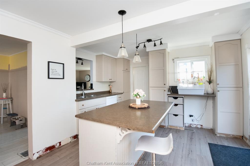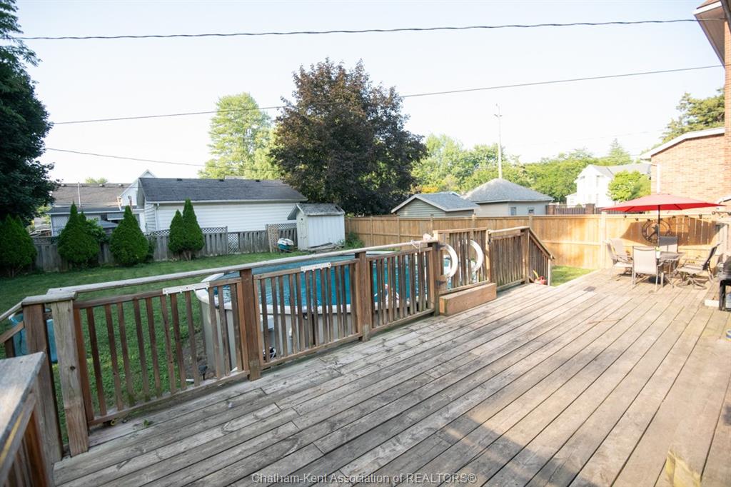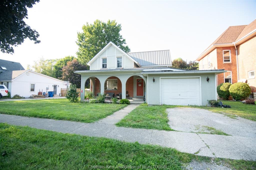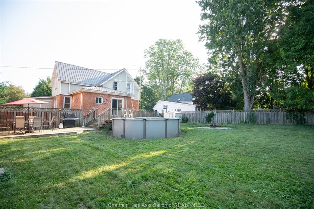 Affordable, family-friendly living in a great Dresden location! This charming 1½ Storey, 3-bedroom home, sits on a generous lot and over 1500sqft of living space. This home offers the perfect blend of character, comfort, and outdoor enjoyment—ideal for first-time buyers or growing families. From the welcoming covered front porch to the spacious, fully fenced backyard with an above-ground pool, this property delivers plenty of room to relax, entertain, and make lasting memories. Step inside to a bright, open main floor featuring a modern kitchen with loads of cabinetry, a large island, and updated finishes. The kitchen flows seamlessly into the dining area and out to the backyard through patio doors, offering excellent natural light and easy indoor-outdoor living. The main floor also includes a full bathroom and convenient layout perfect for everyday life. Upstairs, you’ll find all three bedrooms along with laundry and a second bathroom currently under construction—giving you the opportunity to finish it exactly the way you want. The home’s thoughtful layout and functional spaces allow for a comfortable and practical lifestyle. Outside, the fully fenced backyard becomes your private oasis and enjoy the above-ground pool (new in 2021 with equipment), there’s plenty of space for the kids and pets to play. An attached garage provides extra room for storage, hobbies, or tinkering. Additional updates include metal roof on the house for long-lasting durability, updated forced air gas furnace and A/C (2021), and a new sump pump (2021). Located just a short walk to Dresden Area Central School, parks, and downtown amenities, this home offers convenience and community all in one place. A wonderful opportunity to get into the market and enjoy a move-in-ready home with room to grow!