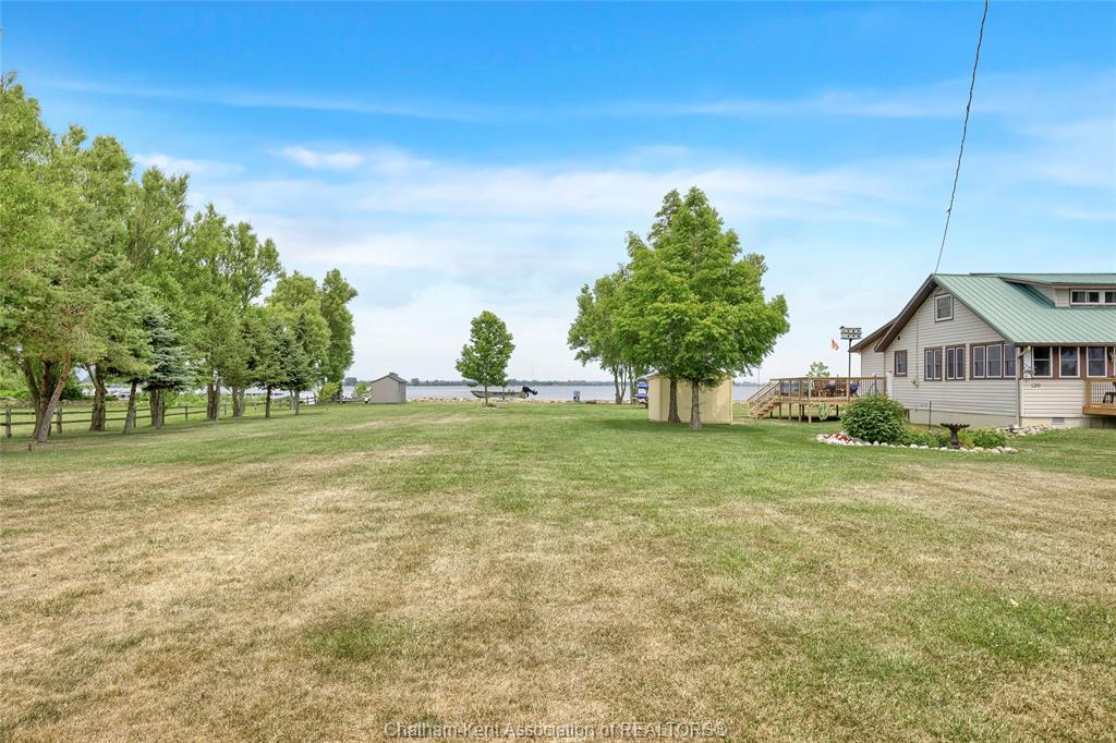 Here’s a rare opportunity to own 100ft of Rondeau Bay frontage with Lake Erie views across the street! This parcel is vacant land and ready for you to build your dream home and begin enjoying waterfront living. With only a few steps away from a walking path along Lake Erie, the trail follows through into the Village of Erieau where you will find restaurants, LCBO, marina, a sandy public beach, brewery, local finds and so much more! This waterfront property offers a great spot for early morning sunrises, birding and beautiful sunsets! Fishing, swimming, and boating right out your backyard on the Bay. As you enter the property through two fieldstone pillars and steel gate, you are met with space to spread out. There is a grey storage shed and a kayak rack included with this stunning property and plenty of trees to add to the ambiance. With a concrete block and fieldstone breakwall in the backyard along the Bay your access to the water is second to none! Buyer to verify and perform their own due diligence with utility hookups, building permit, permitted uses and satisfying themselves for the enjoyment of this property. Property being sold in AS IS condition with no representations or warranties. Lot Lines in photos are for illustration purposes only and should be confirmed by the buyer.
