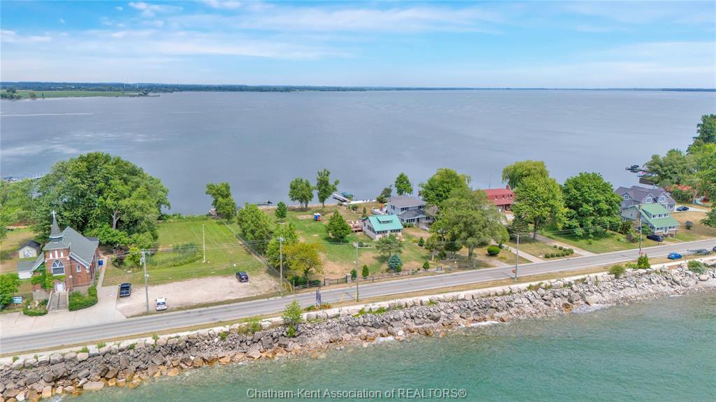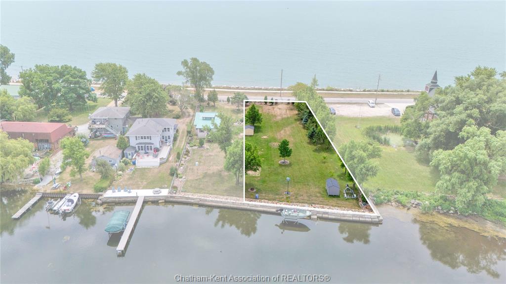 Here’s a rare opportunity to own 100ft of Rondeau Bay frontage with Lake Erie views across the street! This parcel is vacant land and ready for you to build your dream home and begin enjoying waterfront living. With only a few steps away from a walking path along Lake Erie, the trail follows through into the Village of Erieau where you will find restaurants, LCBO, marina, a sandy public beach, brewery, local finds and so much more! This waterfront property offers a great spot for early morning sunrises, birding and beautiful sunsets! Fishing, swimming, and boating right out your backyard on the Bay. As you enter the property through two fieldstone pillars and steel gate, you are met with space to spread out. There is a grey storage shed and a kayak rack included with this stunning property and plenty of trees to add to the ambiance. With a concrete block and fieldstone breakwall in the backyard along the Bay your access to the water is second to none! Buyer to verify and perform their own due diligence with utility hookups, building permit, permitted uses and satisfying themselves for the enjoyment of this property. Property being sold in AS IS condition with no representations or warranties. Lot Lines in photos are for illustration purposes only and should be confirmed by the buyer.