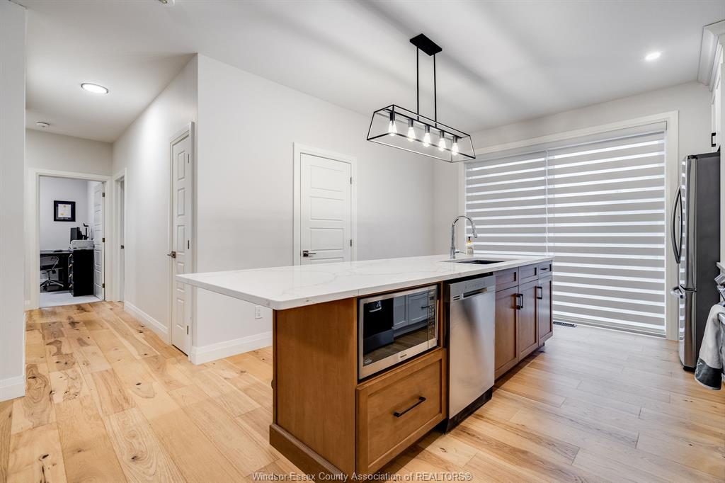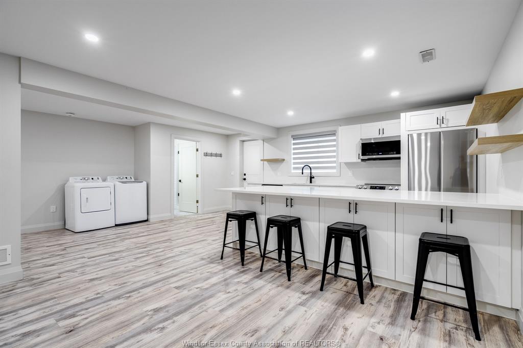 fully finished basement offers separate entrance, full kitchen, laundry, and spacious living area-perfect as a