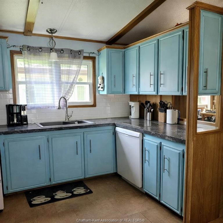 Two bedroom, 70 ft. mobile home in a quiet, year-round mobile home park just minutes south of Grand Bend. Ideal for 50 plus and retirees. Close to the great beaches of Lake Huron, several public golf courses, and the Pinery Provincial Park. Open concept kitchen/dining/living room with walk-in kitchen pantry. Tip out windows for easy cleaning. Some new flooring. Roof shingles replaced in 2017. Brand new washing machine (2026). Master bedroom has double closets running the full length of the room. Low maintenance exterior, nicely landscaped, parking for three cars, storage shed, and wheelchair ramp. Land lease fee will be $571.87 and includes property taxes, municipal water, park septic system, community in-ground pool, clubhouse, pavillion, extra vehicle & RV parking, garden plots, horseshoe pits, shuffleboard & common grounds/road maintenance. Please note: Some photos are virtually staged.