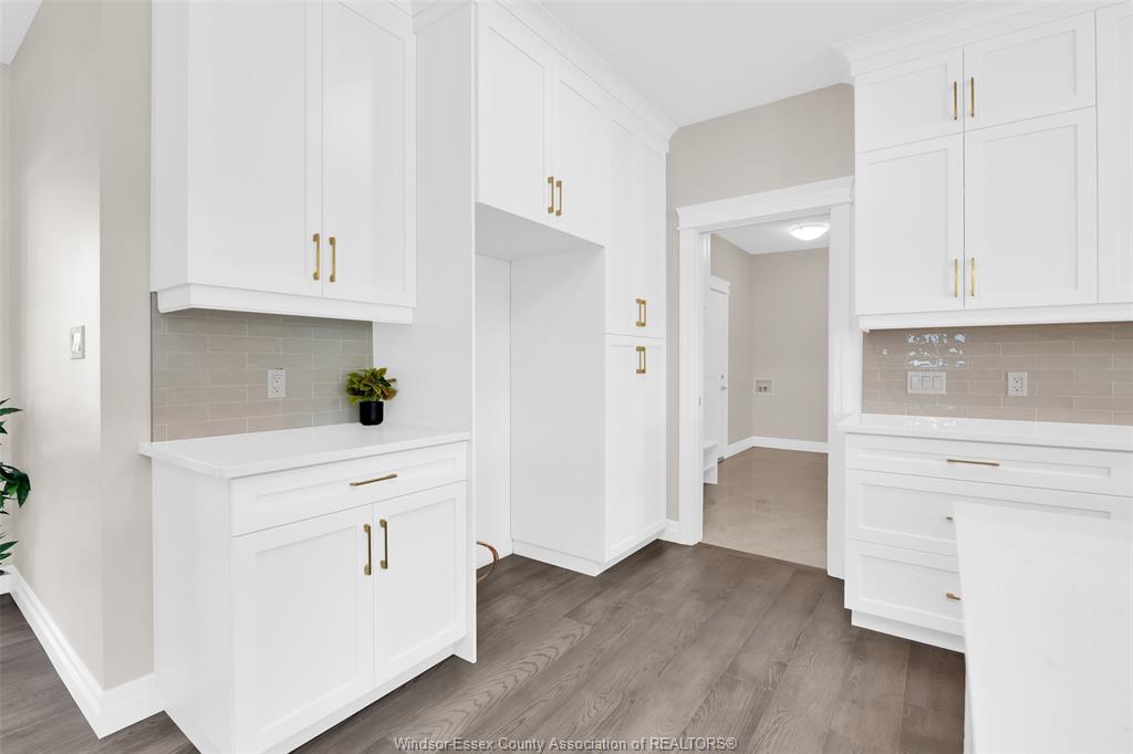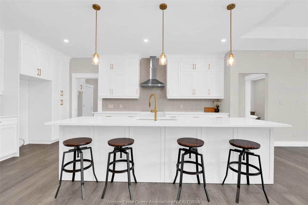 a gourmet kitchen featuring custom cabinetry, oversized island & quartz counters. Includes 2 large