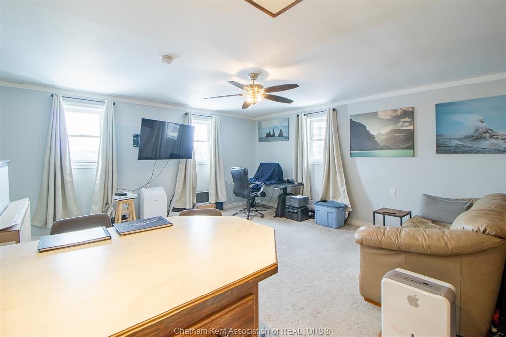 A rare opportunity to own a flexible industrial-zoned property that blends residential comfort with exceptional workspace potential. This legal non-conforming property features a well-kept 2-bedroom, 2-bathroom home alongside a detached heated workshop complete with a fully finished upper-level suite—ideal for contractors, tradespeople, investors, or entrepreneurs looking to operate and live in one convenient location. The main residence offers bright, functional living space with two generous bedrooms, a versatile office/bonus room, and two full bathrooms. A partially finished basement expands the living area with a spacious rec room, bar setup, and cozy gas fireplace—perfect for relaxing or entertaining. Outside the large fenced backyard complete with hot tub is great for relaxing while providing a safe and secure place for your kids to play or pets to roam. The detached shop is designed for year-round productivity, featuring its own utility meters, two heating units, oversized access doors, dedicated office space, 2-piece bathroom, laundry area, and ample storage. Whether used for business operations, equipment storage, or light manufacturing, the space delivers outstanding versatility. Above the shop, the finished upper-level suite adds even more flexibility with a kitchenette and full 3-piece bathroom—ideal for a private office, studio, or additional workspace. Located within an industrial MR zone, the property’s legal non-conforming residential status allows for a variety of permitted uses and potential income opportunities (full list available upon request). Conveniently situated with easy access to major routes, amenities, and Highway 401, this property offers excellent connectivity for both business and everyday living.