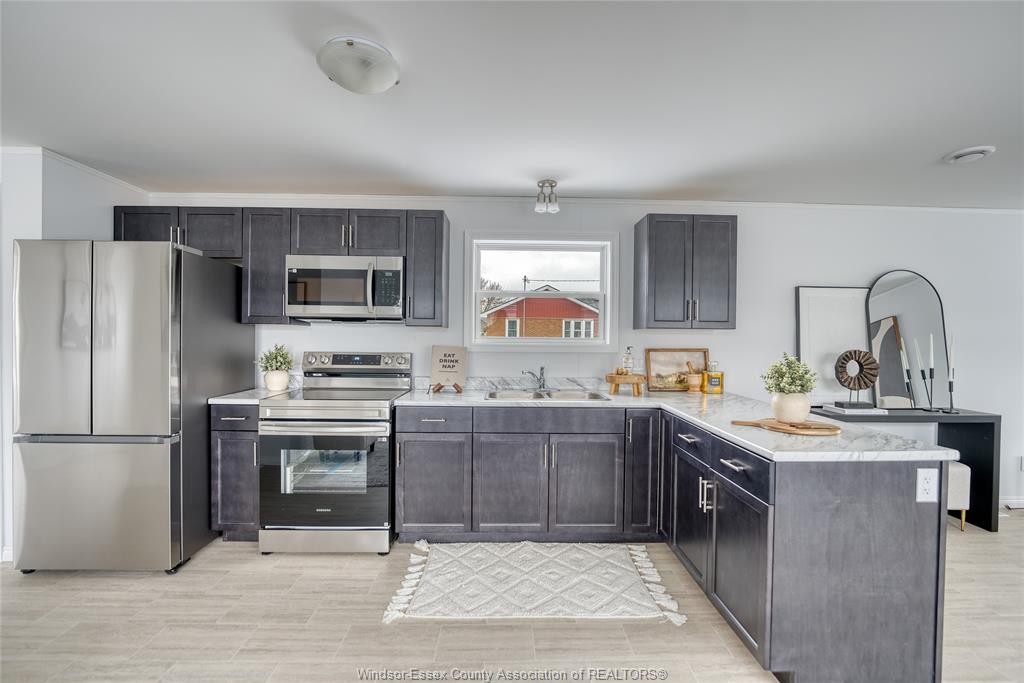 steel kitchen appliances included. New asphalt driveway. The home is on land lease.