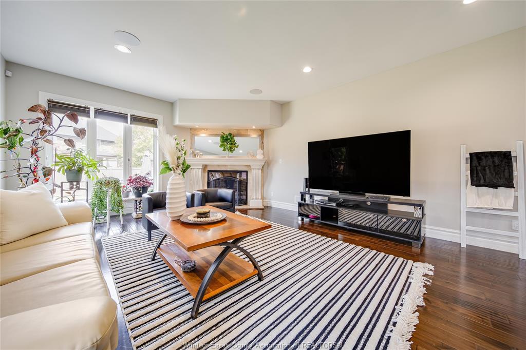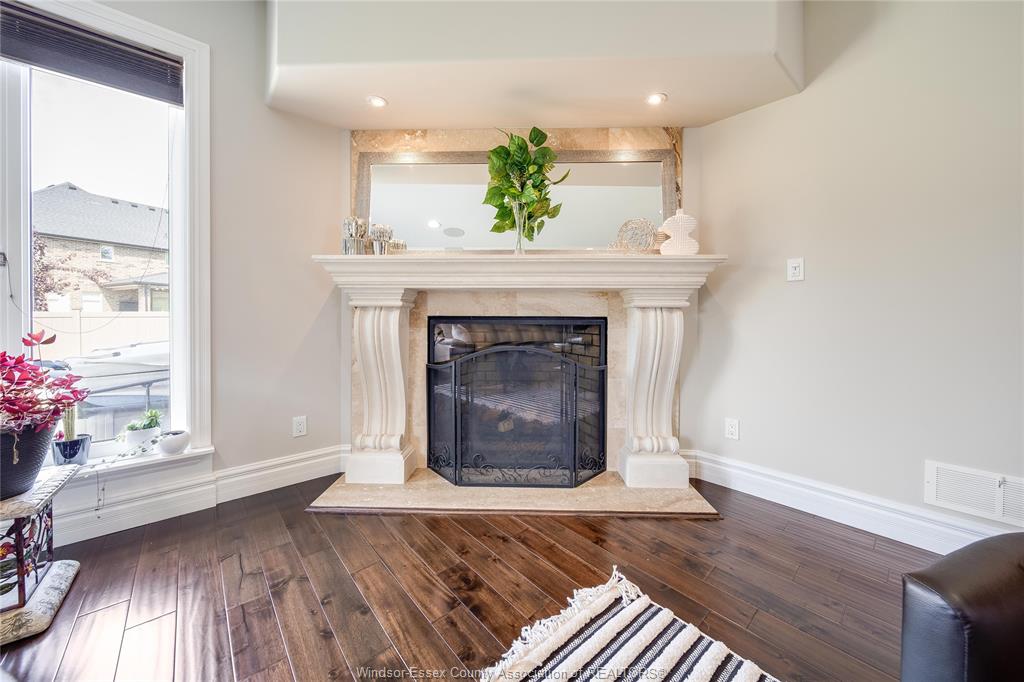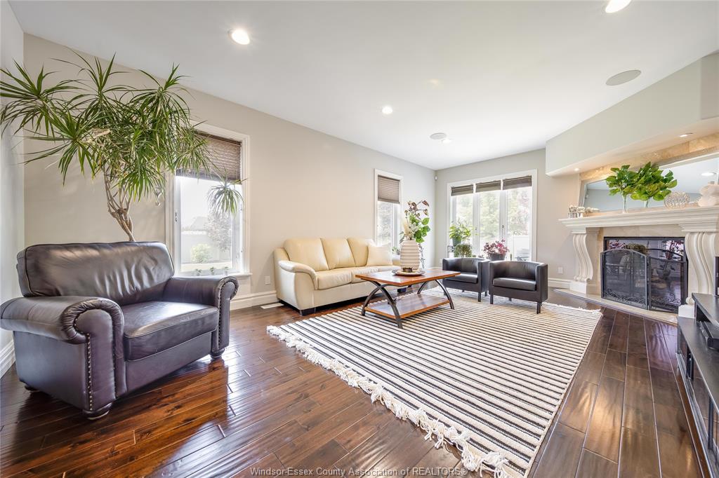 STEP INTO A TWO-STORY FOYER WITH ELEGANT HARDWOOD AND TILE FLOORING THROUGHOUT. CUSTOM TOUCHES INCLUDE DOUBLE BEVELED GLASS FRENCH DOORS, IN-CEILING SPEAKERS, AND A GAS FIREPLACE WITH A GRAND MANTEL THAT ANCHORS THE LIVING SPACE.