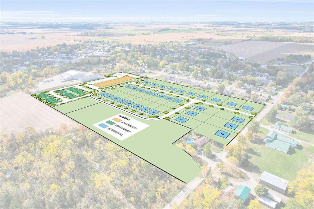 Seize this rare opportunity to develop a 17+ acre site in Thedford, draft plan approved for 126 residential units—32 single-family homes, 24 townhomes, and a three-storey, 70-unit apartment or retirement building. Just 10 minutes from Lake Huron’s beaches and near Port Franks and Grand Bend, this prime location offers outdoor recreation, stunning sunsets, and small-town charm with modern conveniences nearby. Close to Forest, Parkhill, and Grand Bend, residents will enjoy easy access to shopping, dining, and services. Nearby attractions include Widder Station Golf, Shale Ridge Estate Winery, and the upgraded Legacy Recreation Centre with an arena, banquet hall, indoor pickleball, library, and nursery school. With all municipal services at the road, development is seamless. Ideal for a residential community, retirement residence, or mixed-use project. Severance options available. Price plus HST, if applicable. Don’t miss this prime investment!