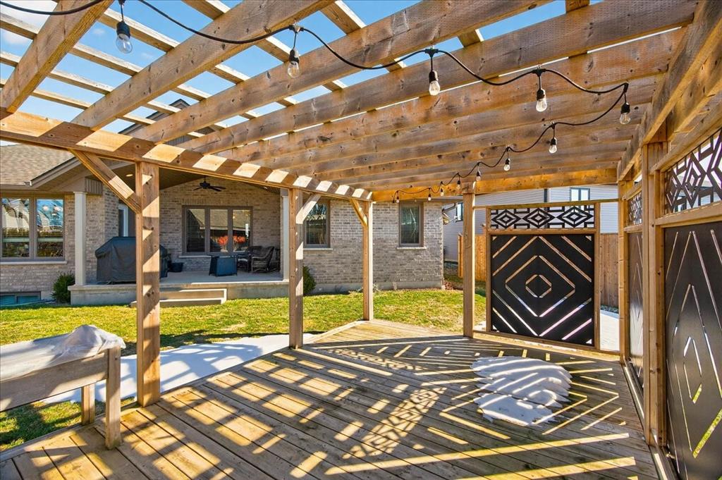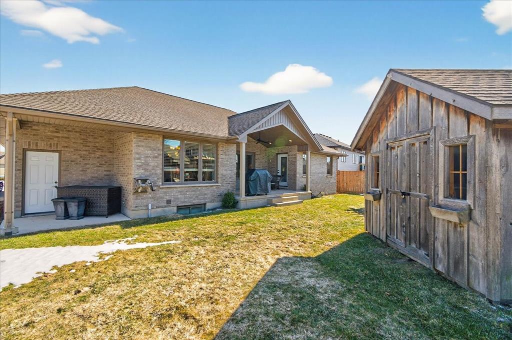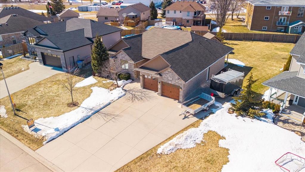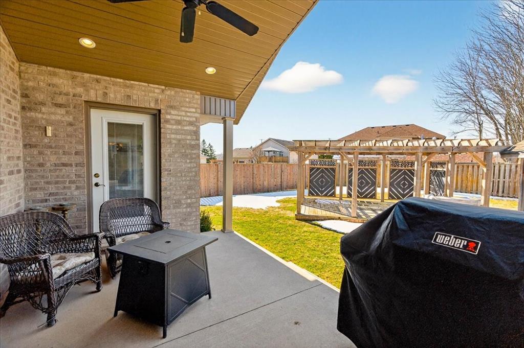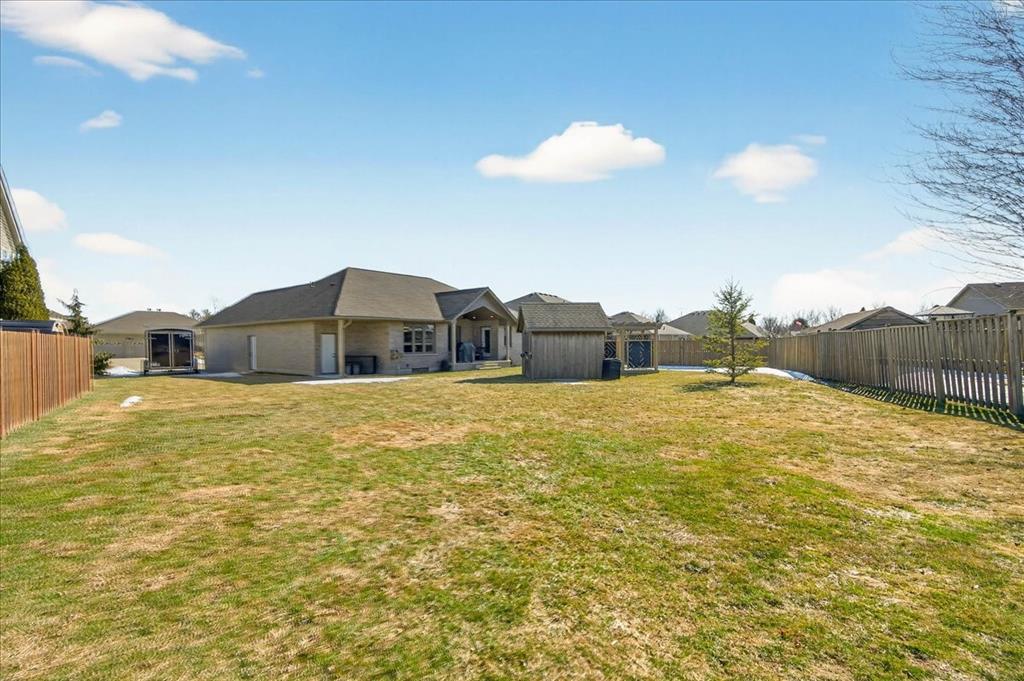 Welcome to one of the most desirable streets in Forest, where this beautifully finished full stone and brick bungalow offers the perfect blend of space, style, and functionality. Built in 2012, this impressive home features almost 1,800 sq ft of main floor living and nearly 3,600 sq ft across both levels. Designed for comfortable one-floor living, the main level offers engineered hardwood flooring throughout, 3 spacious bedrooms and 2 full bathrooms. The kitchen is a true standout with custom cabinetry, abundant storage, a built-in corner pantry, and a gas stove that will impress any home chef. The inviting living room is centered around a fireplace with custom tile surround, tray ceilings, and a thoughtfully designed entertainment area that ties the space together beautifully. The lower level expands your living space with a fantastic open layout ideal for a recreation room, games area, home gym, or media space. Downstairs you’ll also find a fourth bedroom, dedicated home office, a newly completed 3-piece bathroom, and three additional storage rooms—offering exceptional flexibility for growing families or guests. Situated on an extra-wide pie-shaped lot with generous backyard space, this property is designed for both relaxation and entertaining. Enjoy the covered rear porch with gas hookup, a charming pergola creating the perfect outdoor gathering space, and a detached 10x10 shed for added storage. The double car garage with an extra-deep bay is ideal for parking a boat or recreational vehicles. A rare opportunity offering space, quality, and an exceptional location.