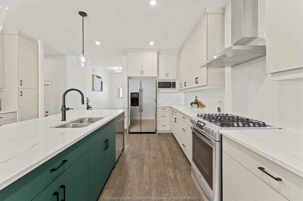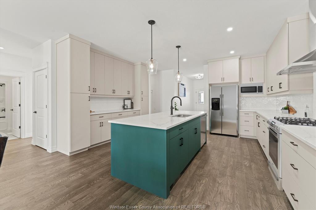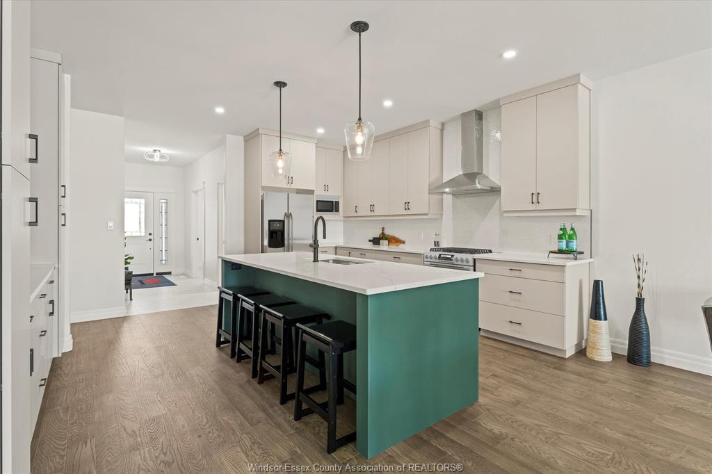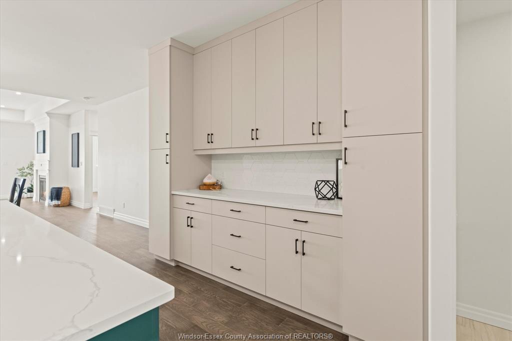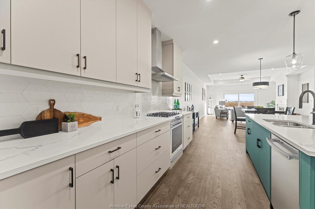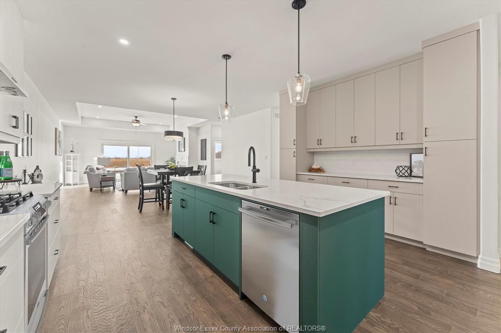 open-concept layout. The heart of the home is a beautifully appointed kitchen featuring custom cabinetry, quartz