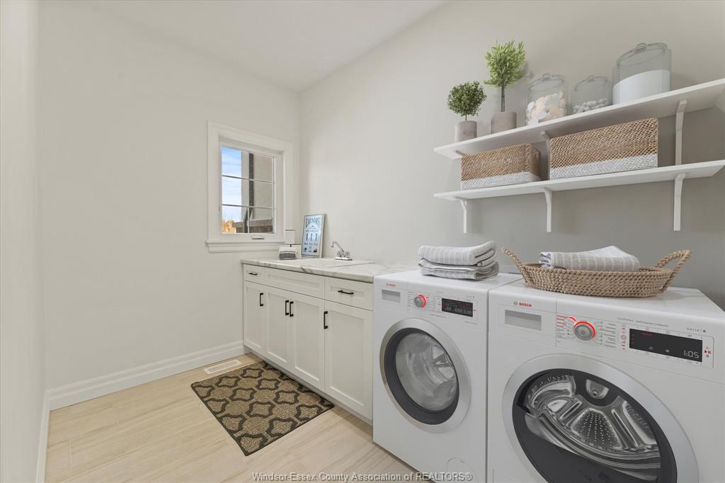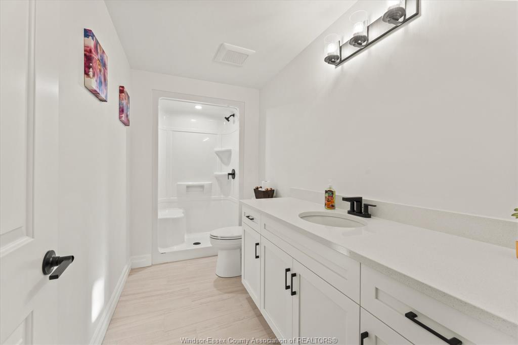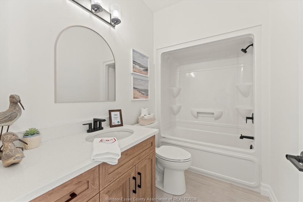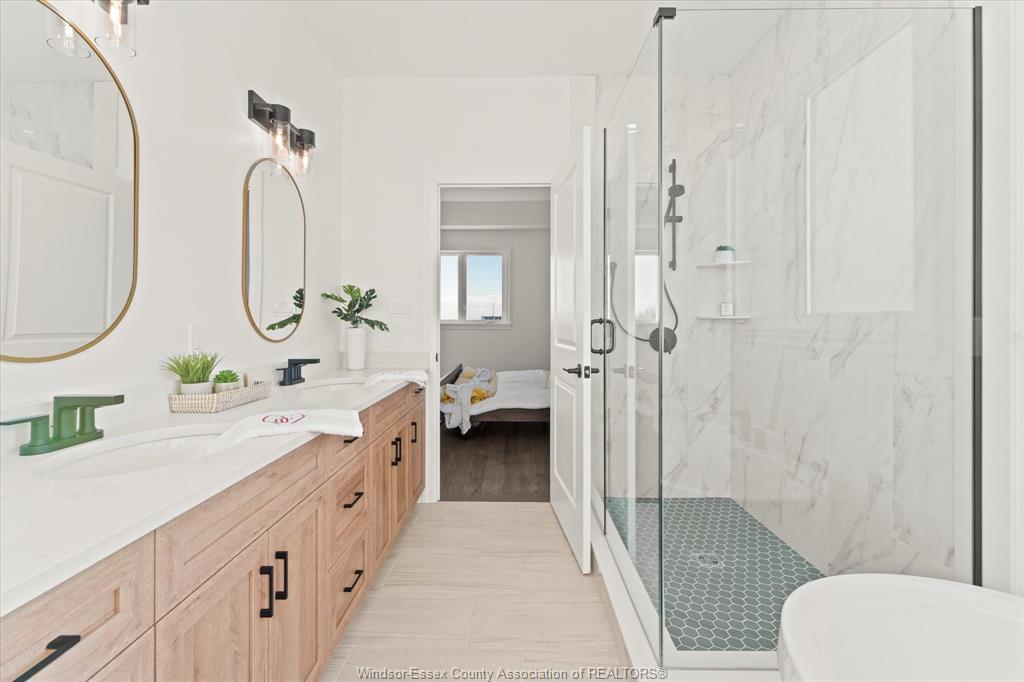 tub, dual vanities, and tiled glass shower. The finished lower level expands your living space with an additional