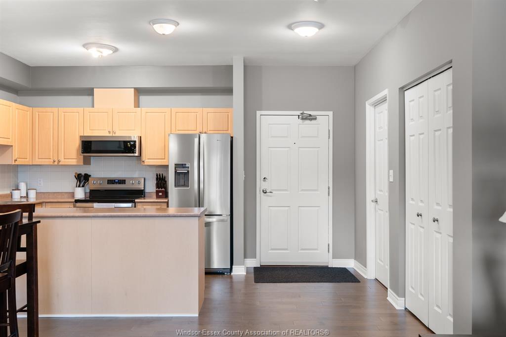 Meticulous, affordable, and perfectly located in the heart of LaSalle, this gorgeous end-unit condo offers truly worry-free living. Ideal for retirees or young families, this spacious unit features 2 bedrooms and 2 full bathrooms, including a generous primary suite with a large ensuite and walk-in closet. The open-concept layout offers a bright living space with a gas fireplace and a large kitchen with ample cabinetry and counter space. Sliding patio doors lead to a private balcony with lovely views—perfect for entertaining. Additional highlights include in-suite laundry, elevator access, open parking, and all newer appliances included. Enjoy a highly desirable walkable location close to shopping, restaurants, banks, and scenic walking trails. Condo Fee = $394.50 (Exterior & Ground Maintenance, Property Management, Water). Call Team Brad Bondy today!