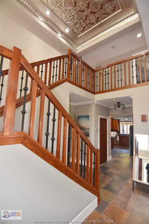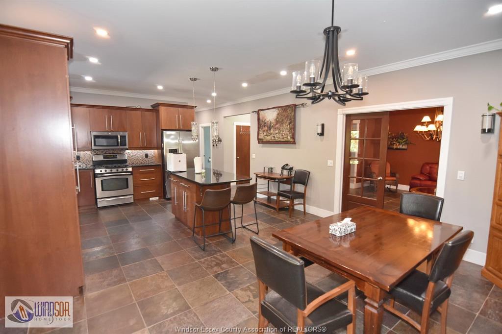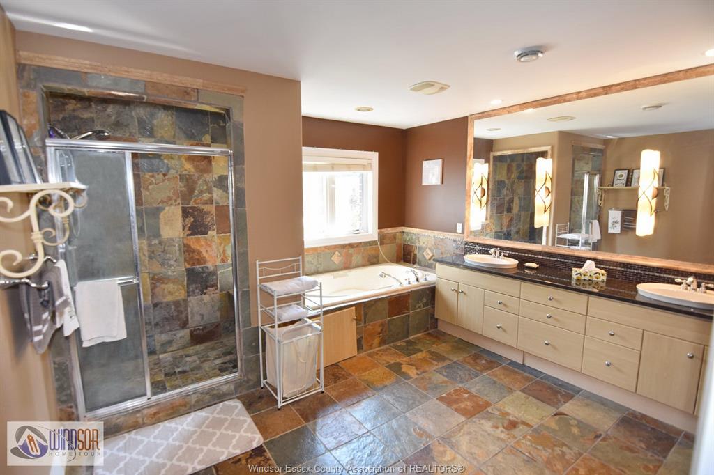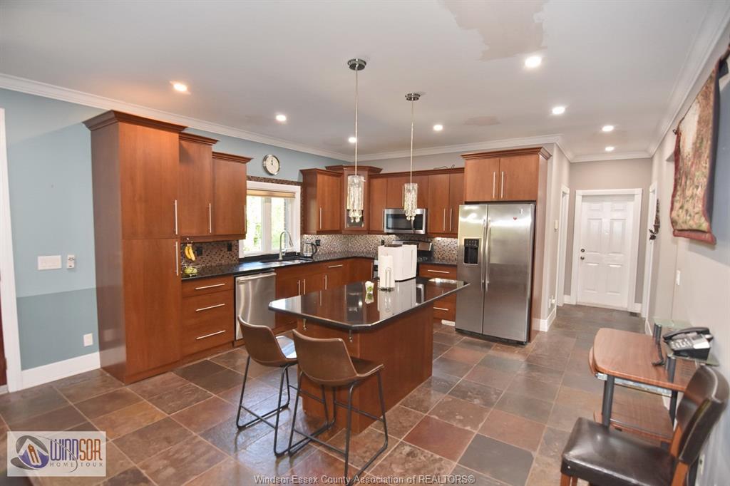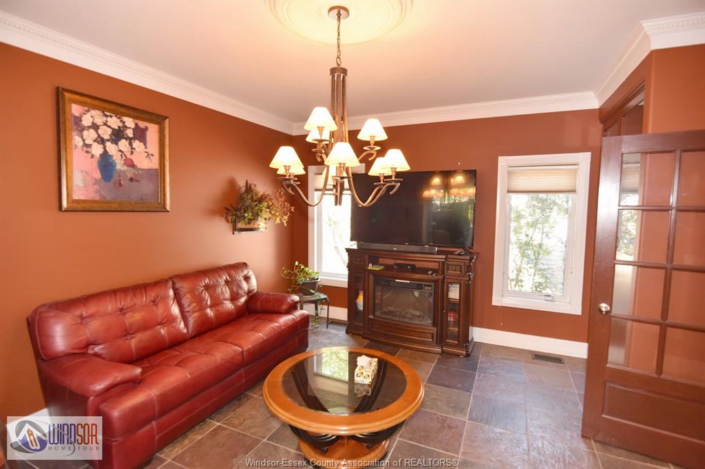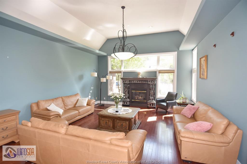 Larger than it appears from the outside, this full brick and stone residence offers 4+ bedrooms and 4.1 baths, situated in an established and highly sought-after area of LaSalle. Featuring a sunroom and a fully finished basement with a second kitchen, this home is designed for both comfort and function. The grand foyer greets you with a beautifully detailed tin ceiling. The main floor includes a spacious bedroom with ensuite and walk-in closet, a large kitchen with granite counters, island and dining area, formal dining room, living room (or optional 2nd bedroom), a beautiful great room with soaring ceilings, main floor laundry, and a convenient 2-piece bath.