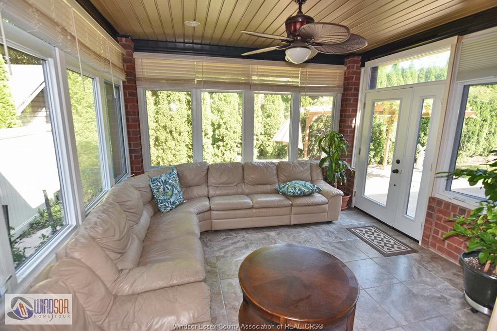Exterior features include a sunroom, a 2-car attached garage with side drive, plus a separate bonus garage. Walking trails are just steps away, with convenient access to the E.C. Row Expressway, Hwy 401, outlet mall, and LaSalle’s main grocery stores.