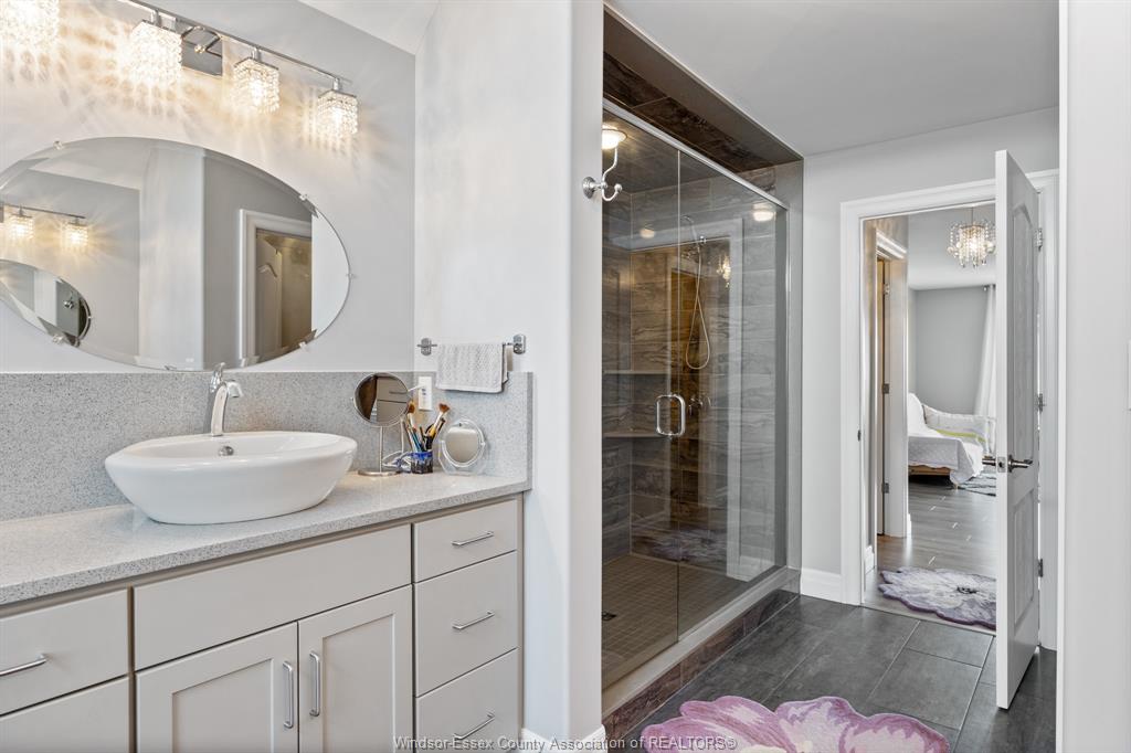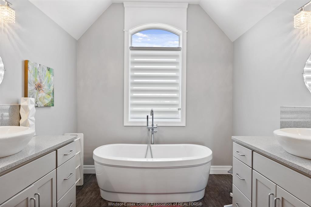 spacious Master:dbl walkins, pampering Ensuite:dbl vanities, cust tile/glass shower & soaker tub.