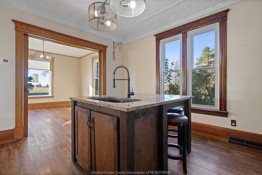Welcome to this picturesque 2.4-acre country retreat, ideally situated on a paved road between Tilbury and Wheatley. This beautiful brick century home blends timeless charm with thoughtful modern updates—perfect for those seeking peace, space, and character. Step inside and fall in love with the craftsmanship and detail—original trim, stunning hardwood floors, tin ceilings, elegant sliding doors, and built-in features that tell a story of the home’s heritage. With 4 spacious bedrooms and 2.5 updated baths, this home offers room for the whole family to live, work, and play in comfort. Recent updates bring peace of mind, including a new roof, windows, furnace, A/C, plumbing, and electrical, all seamlessly integrated without losing the home’s vintage appeal. The attached garage adds convenience and everyday functionality. Outside, a winding driveway welcomes you home through mature trees, leading to three versatile outbuildings: A 45x80 Quonset shed with cement floor and hydro. An extra large former cow barn, also with cement and hydro—ready for your creative use. A third 32x48 workshop ideal for hobbies, storage, or all your toys! Whether you’re looking to start a hobby farm, garden, or simply enjoy the tranquility of country living, this property offers endless possibilities. Experience the best of rural living—where character, comfort, and opportunity come together.