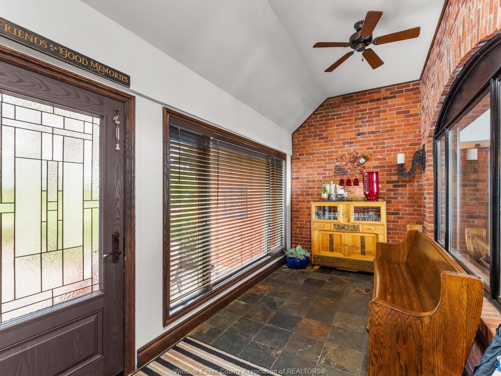266 East Beach Rd—arguably one of the most unique and inviting lakefront homes in Leamington, emulating the vibe of Pelee Island. Tucked away on nearly 1 acre of pristine shoreline along the East Shore, this property feels like your own private retreat. Surrounded by nature with no neighbours to the north for over 0.4 kilometers - serenity, seclusion, and soul-soothing views define the experience here. Full of rustic charm, yet modern finishes, this 1.5-storey full brick home offers a thoughtful layout with soaring 13’ ceilings in the main living area, 3 (could be 4) bedrooms, and 2.5 bathrooms. Reclaimed brick from Detroit, stained glass accents, solid oak doors, wood burning fireplace w/ large oak mantle all add warmth & character throughout. Smart home upgrades—including high-end Andersen windows, a 360° 4K infrared security system, smart lighting, and fibre-optic internet—blend old-world beauty with modern convenience. A stunning addition includes an expansive attached garage/workshop with loft space, 10’ + 8’ garage doors, heated floors, its own electrical panel, and a loft. The original garage is currently set up as a home gym with flexible storage or parking use. Other highlights: granite countertops, new custom oak bar, main-floor laundry, and a full alarm system. A whole-home HVAC dehumidifier keeps the air fresh year-round, and the roof is a 3-layer 50-year asphalt shingle (2010 main house, 2018 addition). As a bonus, there is a bunkie that offers income potential or guest accommodations, complete with its own deck, BBQ, private outdoor shower, kitchenette, lofted queen bed, and breathtaking lake views. The shoreline is fortified with a high break wall and massive boulders. 10 min to Point Pelee National Park, 12 min to Leamington Marina & Seacliff Park. If you’ve been searching for a home that feels like a hidden paradise with equal parts peaceful getaway and functional forever home—this is the one.