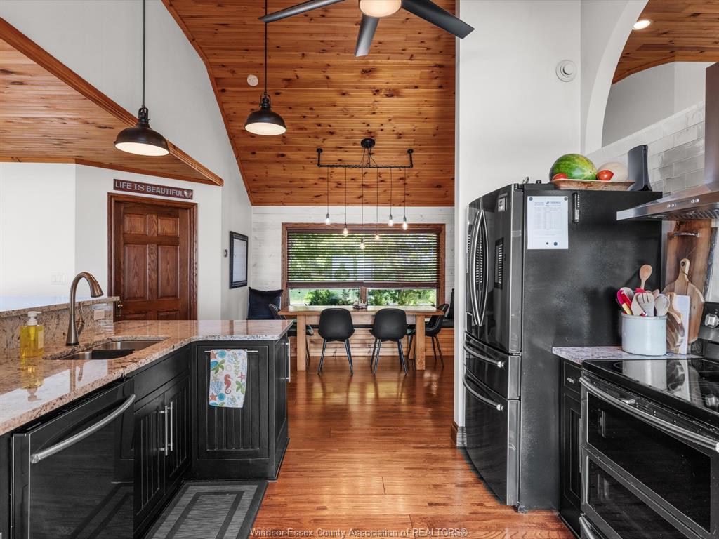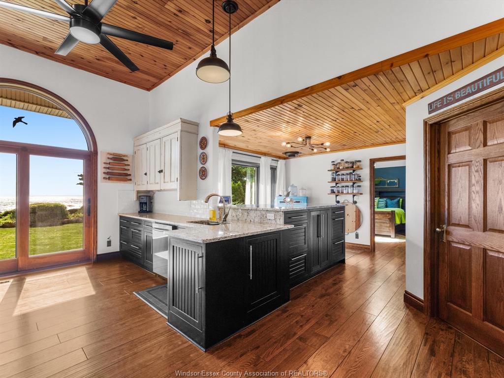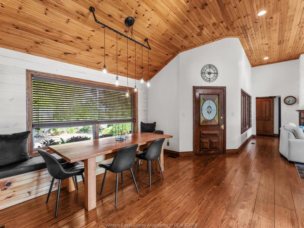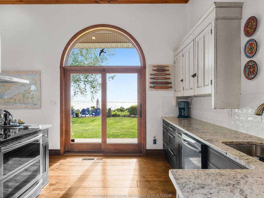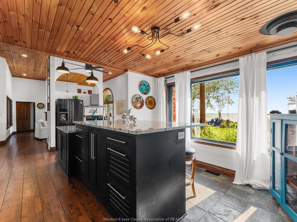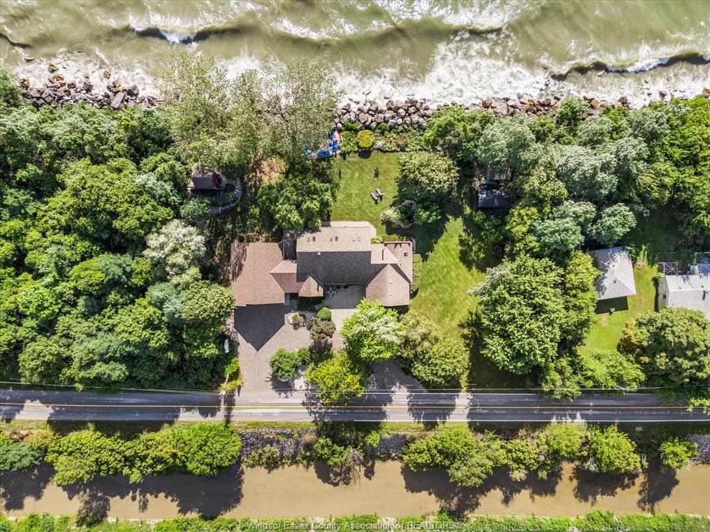 266 East Beach Rd—arguably one of the most unique and inviting lakefront homes in Leamington, emulating the vibe of Pelee Island. Tucked away on nearly 1 acre of pristine shoreline along the East Shore, this property feels like your own private retreat. Surrounded by nature with no neighbours to the north for over 0.4 kilometers - serenity, seclusion, and soul-soothing views define the experience here. Full of rustic charm, yet modern finishes, this 1.5-storey full brick home offers a thoughtful layout with soaring 13’ ceilings in the main living area, 3 (could be 4) bedrooms, and 2.5 bathrooms. Reclaimed brick from Detroit, stained glass accents, solid oak doors, wood burning fireplace w/ large oak mantle all add warmth & character throughout. Smart home upgrades—including high-end Andersen windows, a 360° 4K infrared security system, smart lighting, and fibre-optic internet—blend old-world beauty with modern convenience. A stunning addition includes an expansive attached garage/workshop with loft space, 10’ + 8’ garage doors, heated floors, its own electrical panel, and a loft. The original garage is currently set up as a home gym with flexible storage or parking use. Other highlights: granite countertops, new custom oak bar, main-floor laundry, and a full alarm system. A whole-home HVAC dehumidifier keeps the air fresh year-round, and the roof is a 3-layer 50-year asphalt shingle (2010 main house, 2018 addition). As a bonus, there is a bunkie that offers income potential or guest accommodations, complete with its own deck, BBQ, private outdoor shower, kitchenette, lofted queen bed, and breathtaking lake views. The shoreline is fortified with a high break wall and massive boulders. 10 min to Point Pelee National Park, 12 min to Leamington Marina & Seacliff Park. If you’ve been searching for a home that feels like a hidden paradise with equal parts peaceful getaway and functional forever home, this is the one. Contact me for more information!