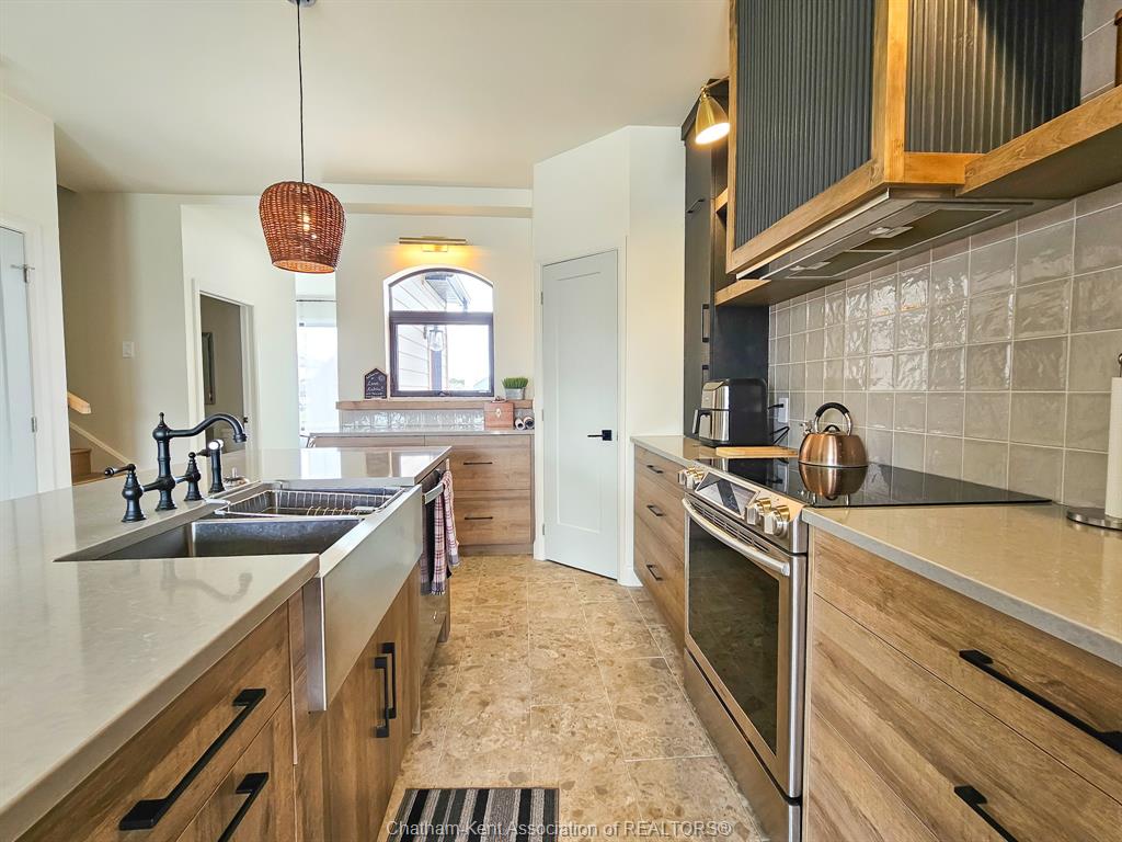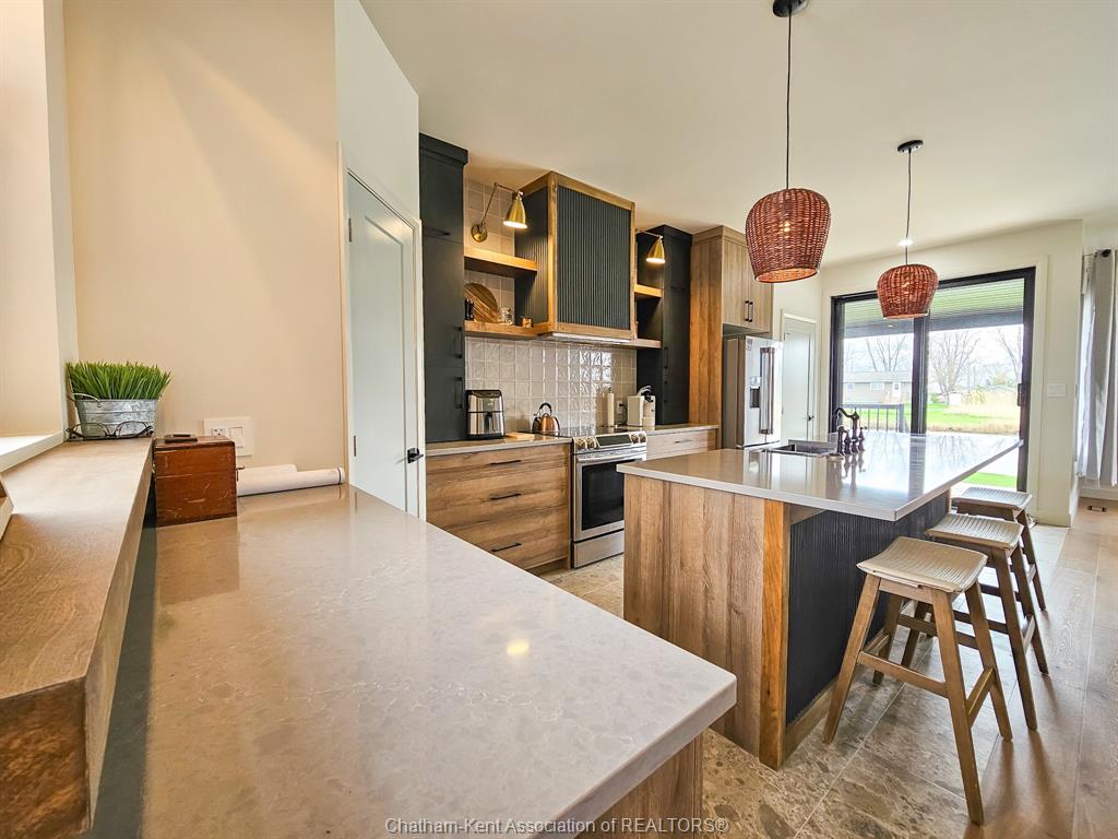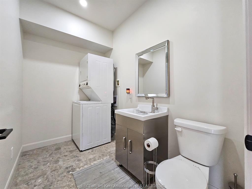 Refrigerator, stove, dishwasher, washer/dryer combo. Hardwired security system. Driveway