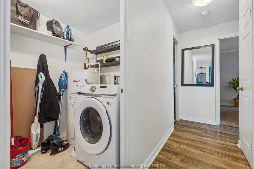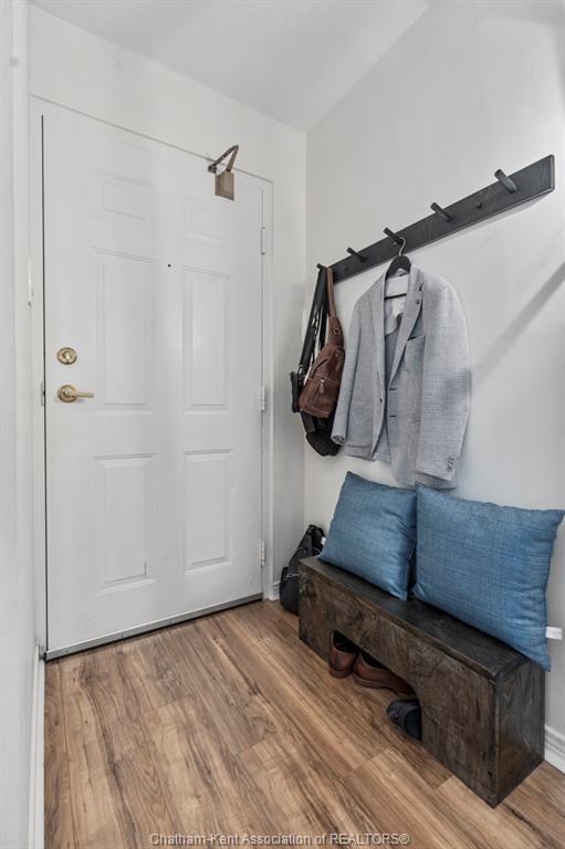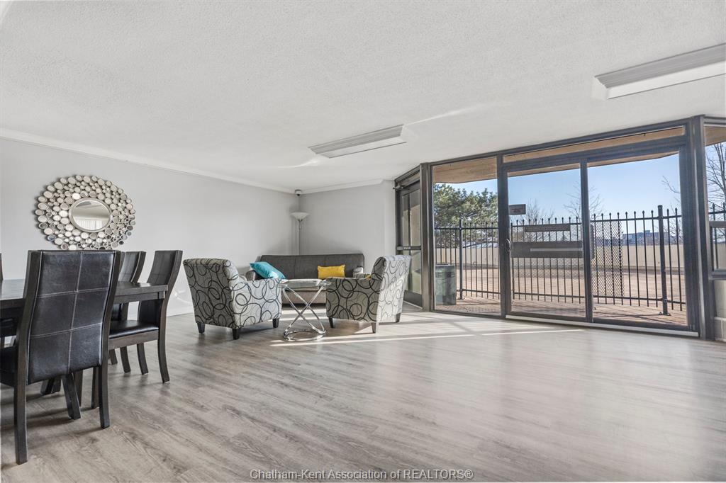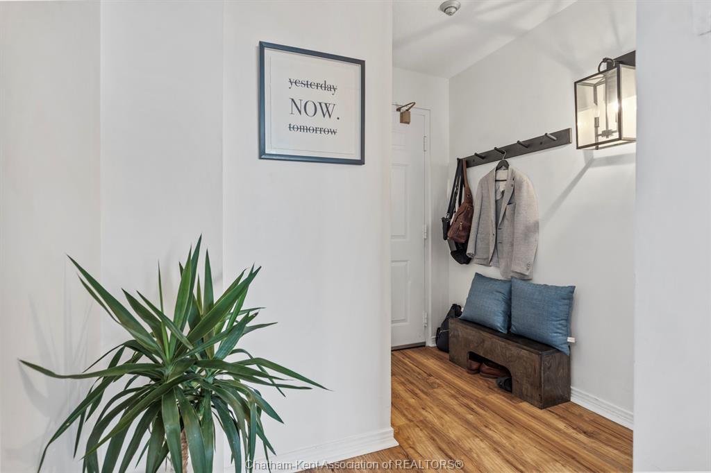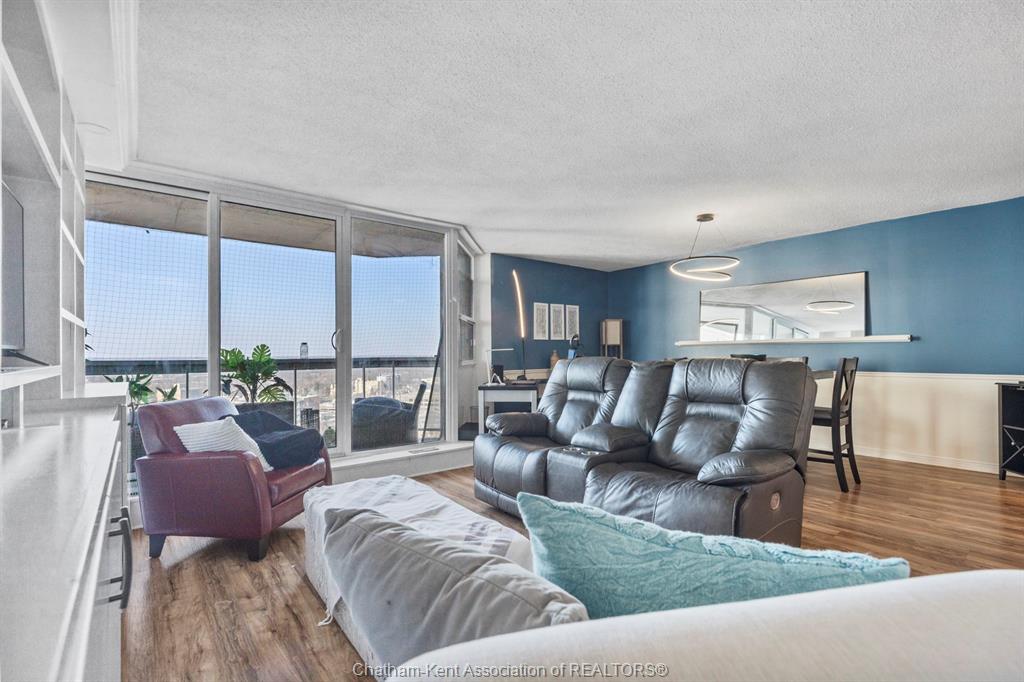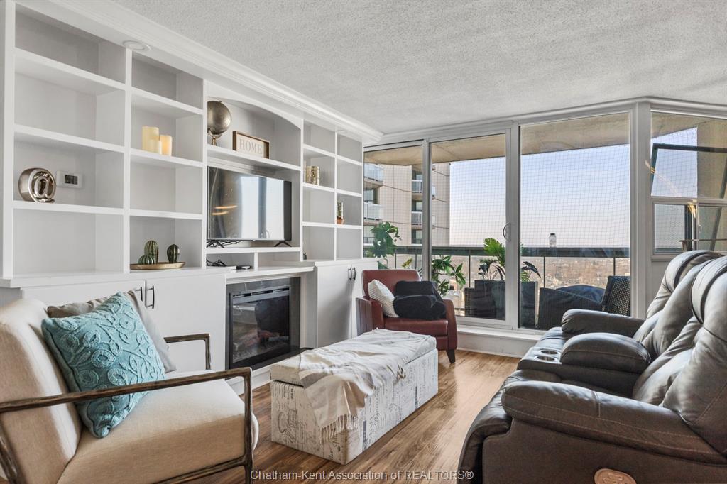 Welcome to 323 Colborne! This 2-bed, 2-bath condo is a beautifully renovated space (2019/2020 with board approval) featuring upgraded flooring and a redesigned kitchen with modern cabinetry, backsplash, pot drawers, island, and lighting. The open-concept living/dining area includes a custom-built wall unit with an electric fireplace, shelving, pot lights, and space for a TV—perfectly blending style and function. Enjoy the stunning views from the large balcony, an ideal setting for urban living. The primary bedroom includes a private ensuite, and in-suite laundry offers extra storage. Just steps from Victoria Park, Richmond Row, Budweiser Gardens, and Covent Garden Market. Colborne Centre offers top-notch amenities: a gym, saltwater pool, sauna, tennis court, games/meeting rooms, guest suite, BBQ terrace, and secure underground parking. Condo fees cover water, parking, and full access to amenities
