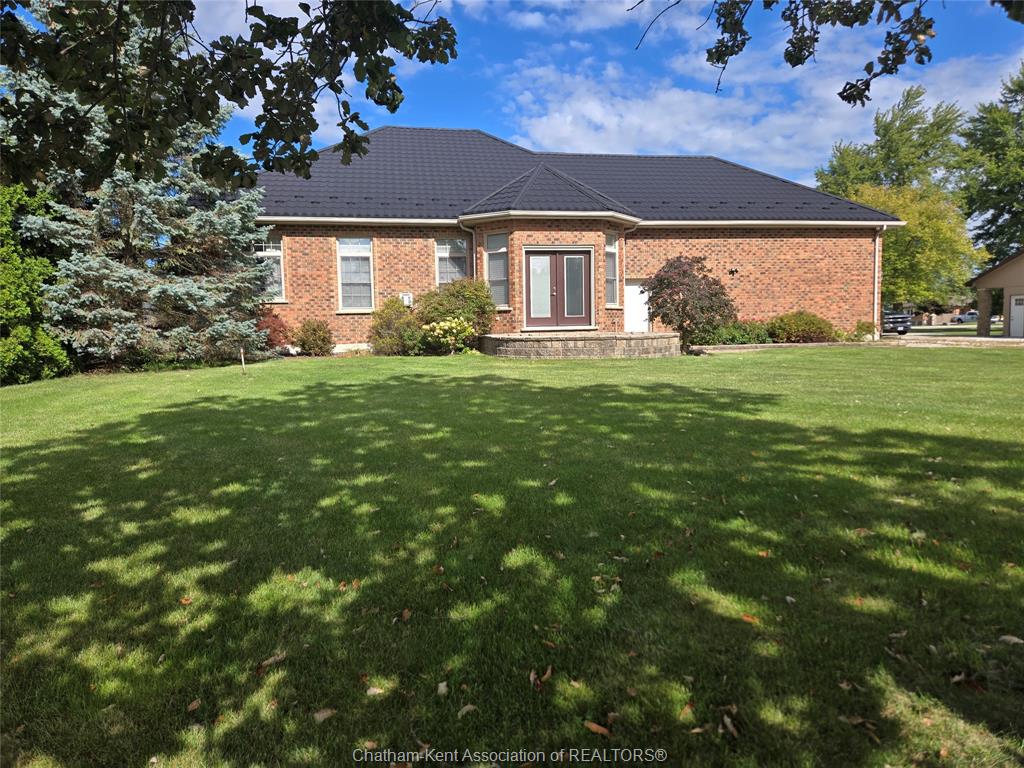 This stunning 2000 sq ft rancher with transferrable warranty metal roof awaits in the heart of Merlin. This home offers expansive 10 ft high ceilings with large windows and plenty of custom touches! The grand entrance leads to a living room accentuated with a stunning floor to ceiling rock faced fireplace. The primary bedroom boasts a large walk in closet and gold accented ensuite bath. Two additional bedrooms with a second full bath and and a bright and spacious office make this a perfect home with room for everyone. PLUS a full unfinished basement to accommodate any future opportunities you might have in mind. A long gravel drive and double car garage provide plenty of parking and a sizeable front and back yard will be yours to enjoy!!! Main floor living at its finest! Immediate possession available! Set up your showing today!