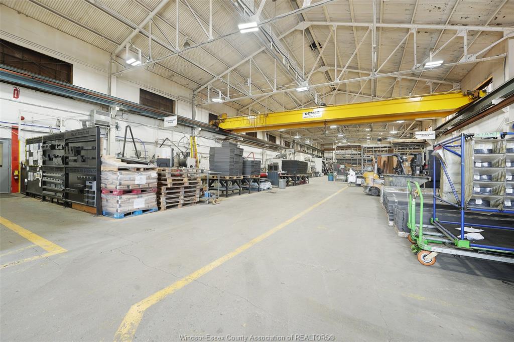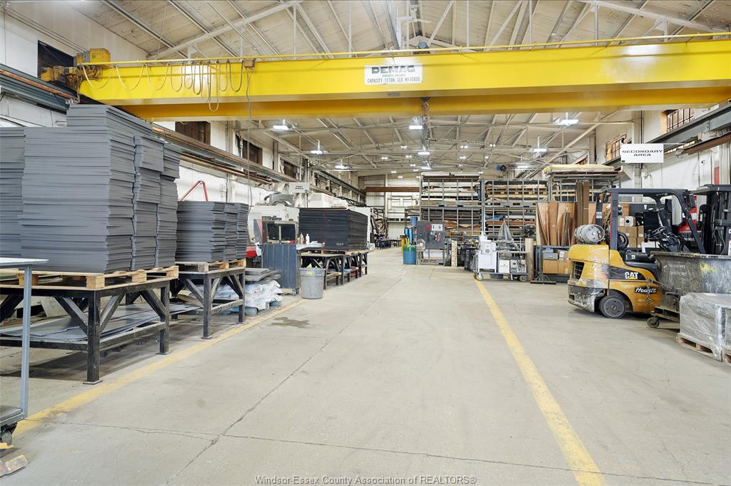 Exceptional industrial opportunity in one of Windsor-Essex’s most sought-after commercial hubs. This well-maintained property offers approximately 20,276 sq ft of primarily industrial space, complemented by finished offices including reception, boardroom, bullpen, kitchen, and lunchroom. Designed for efficiency and productivity, the warehouse features high clear heights, two large bay doors, paint and power wash booths, and fully operational 5-ton and 10-ton cranes. Ample power is available with capacity for expansion. The building has seen numerous updates including newer exterior skin, partial roof and upgraded warehouse lighting. Office areas are serviced by forced air and central A/C, while the warehouse benefits from radiant heating. Situated on a high-exposure corner lot with powered signage, this property offers excellent visibility for your business. The site is fenced with onsite parking for 50+ vehicles. Ideally located just minutes from Highway 401, EC Row Expressway, and the US border, making logistics, shipping, and cross-border operations seamless and efficient. A turnkey facility built for performance, visibility, and growth. Contact Listing Agents for more information and a private tour.