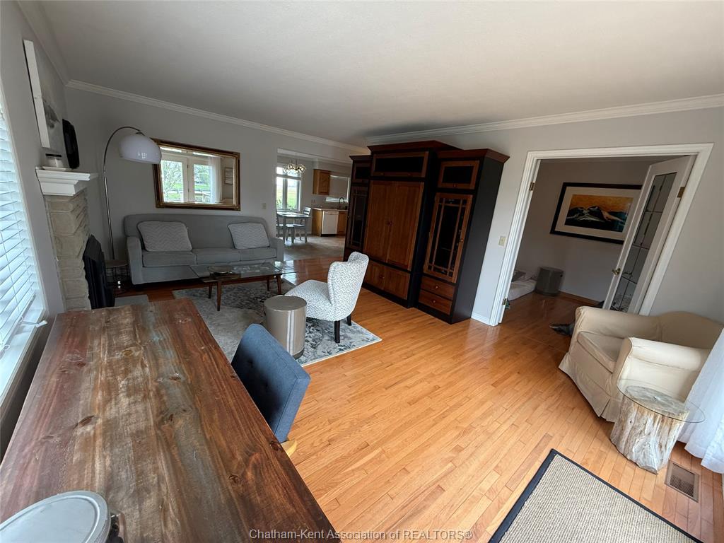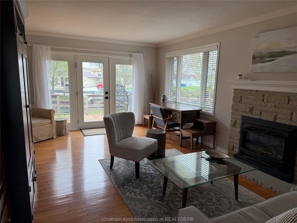 Welcome to this well maintained 2+1 bedroom, 1.5 bath brick ranch in the picturesque town of Port Lambton, perfectly situated on a corner lot with beautiful mature trees along the canal with ample space to park your boat and direct access to the stunning St. Clair River. Step inside to find a cozy living room featuring hardwood floors and a gas fireplace, ideal for relaxing evenings. The open kitchen and dining room combo offers a functional layout, perfect for everyday living and entertaining. A unique "hobby room" provides extra space for a workshop, hobby space or storage. Outside, enjoy the peaceful view of the canal or the St Clair river from your deck, with an outdoor storage shed for all your tools and gear. Don't miss this rare opportunity to live on the water in a well built one floor home.