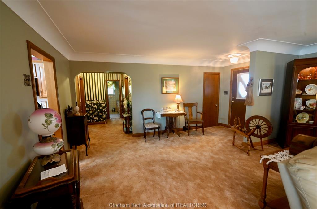 All appliances including those in summer kitchen (as is), washer and dryer, chest freezer, all light fixtures and window coverings, dehumidifier, water treatment system, 2 wooden picnic tables, Ford lawn tractor and trailer (as is) Driveway