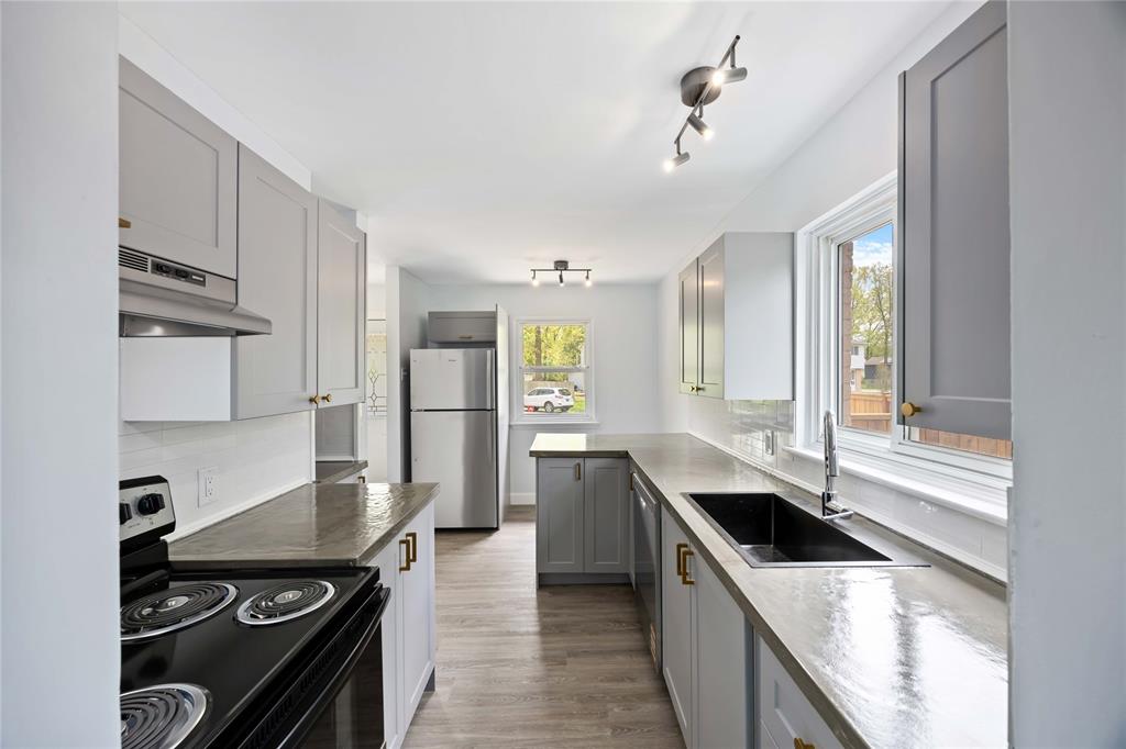 This beautifully updated home is the perfect fit for first-time buyers or young families! Ideally located within walking distance to schools, parks, the YMCA, arena, college, plaza, and city bus hub—everything you need is just steps away. Sitting on a mature lot with no rear neighbours, you'll enjoy privacy and room to play or entertain. Recent exterior upgrades include a new left side privacy fence with gate, freshly seeded lawn, updated landscaping, and large front and rear decks—both covered for year-round enjoyment. Step inside to a completely redone interior featuring durable luxury vinyl plank flooring, modern light fixtures, and a freshly painted palette that feels warm and inviting. The kitchen shines with sleek finishes, while the brand-new bathrooms are bright, clean, and functional. A cozy, decorative electric fireplace sets the mood, and all appliances are included for added convenience. Stylish, spacious, and move-in ready—this home checks all the boxes!