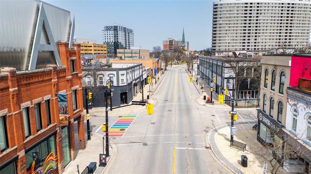 A RARE OPPORTUNITY IN THE HEART OF DOWNTOWN! DISCOVER AN EXCEPTIONAL OPPORTUNITY TO OWN A PIECE OF HISTORY WITH THIS UNIQUE, THREE STOREY, COMMERCIAL MIXED USE APPROX 2,754 SQ FT BUILDING FOR SALE IN THE HEART OF DOWNTOWN SARNIA’S WATERFRONT DISTRICT. IDEALLY SITUATED AT THE CORNER OF CHRISTINA & LOCHIEL ST., THE LOCATION BOASTS GREAT VISIBILITY & TRAFIC COUNT. THE MAIN FLOOR COMMERCIAL SPACE IS TENANTED & HAS NATURAL SUNLIGHT THROUGHOUT WITH LARGE PICTURE WINDOWS, A 2 PC BATH & STORAGE ROOM. A USEFUL BASEMENT LEVEL ACCOMPANIES THE UNIT WITH ANOTHER 2 PC BATH & ADDITIONAL SPACE GREAT FOR INVENTORY, EQUIPMENT, OR WORKSPACE OVERFLOW. THE (D1) ZONING IS DESIGNED TO PROMOTE MIXED-USE DEVELOPMENT IN DOWNTOWN AREA, ENCOURAGING COMMON USES SUCH AS: RETAIL STORES, RESTAURANTS, OFFICES, PERSONAL SERVICE ESTABLISHMENTS, ETC. A 1-BEDROOM RESIDENTIAL LOFT ON THE 2ND FLOOR & A 2-BEDROOM ON THE 3RD FLOOR (BOTH CURRENTLY RENTED) BOAST ORIGINAL ARCHITECTURAL DETAILS WITH EXPOSED BRICK, HIGH CEILINGS, LARGE WINDOWS, & HARDWOOD FLOORS BLENDING HISTORIC ELEGANCE WITH MODERN AMENITIES. LOCATED STEPS FROM THE WATERFRONT, ART GALLERY, CAFES, THEATRE, PUBLIC TRANSIT, & HWY 402 ACCESS, ENSURING STRONG TENANT DEMAND & A VIBRANT COMMUNITY ATMOSPHERE.