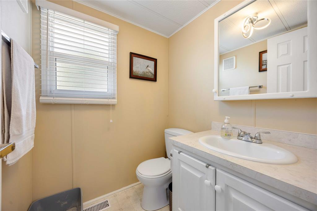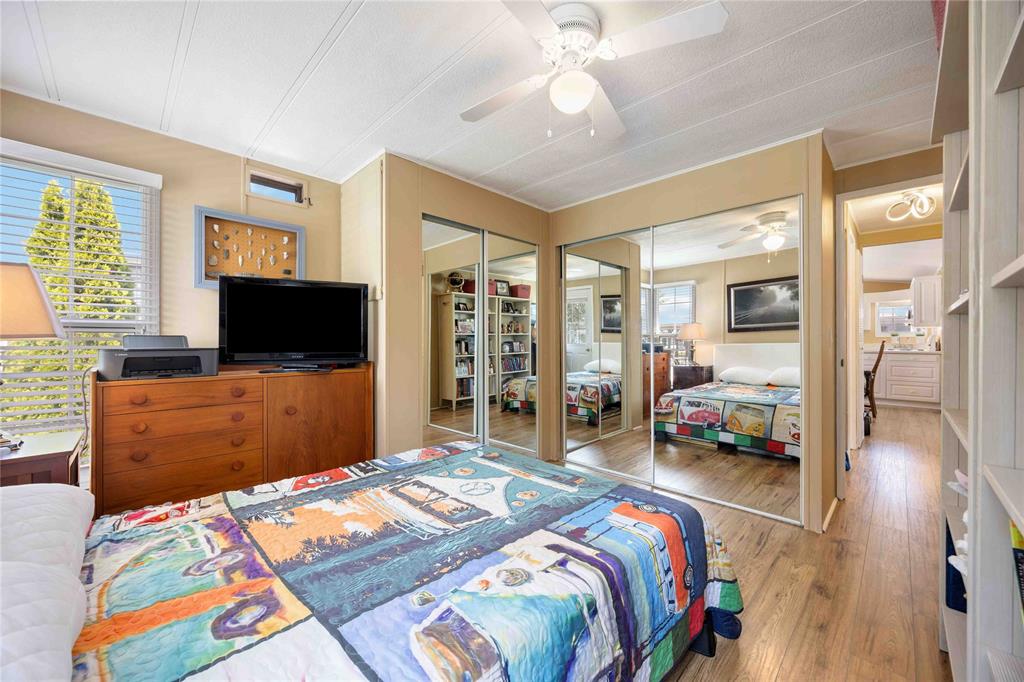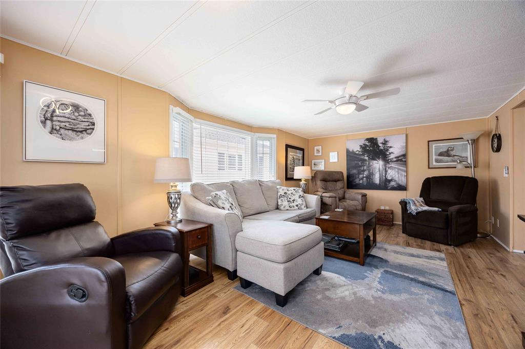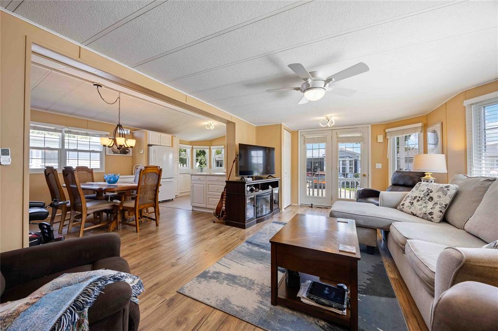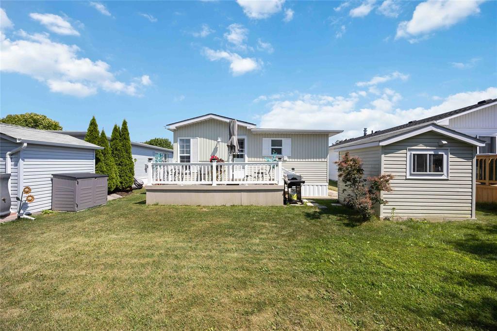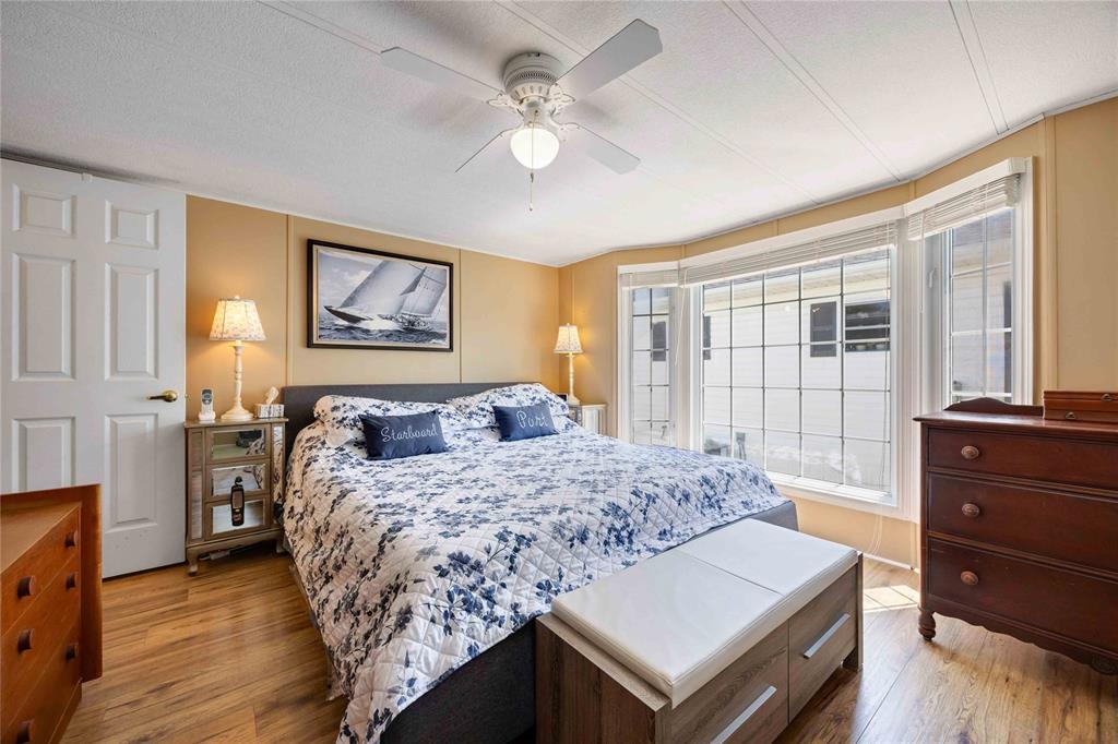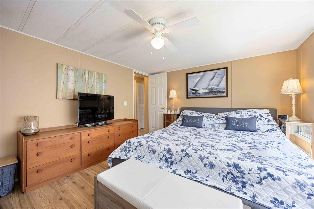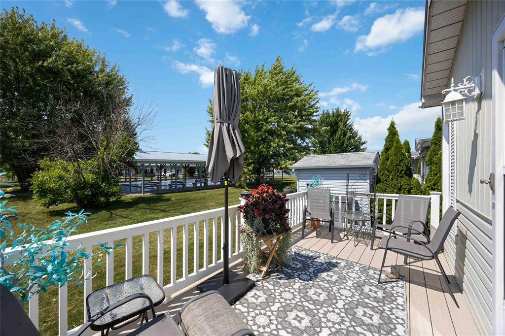 This open concept, 2 bedroom 1.5 bath home is move-in ready and in a prime location! Close to the 12,000 sq ft club house featuring an indoor pool, gym, library, billiards room, and rec hall with kitchen. Steps from your back deck, you'll find bocce courts, horseshoe pits, shuffleboard, and newly refinished pickleball/tennis courts. This home offers newer laminate flooring throughout, an updated kitchen with newer countertops, and a new c/air unit installed in 2023. Plenty of space to entertain with open concept living room and dining room. Primary bedroom has ensuite and walk-in closet. Second bedroom walks out to a private deck with no homes behind you! A wonderful, turn-key, controlled entrance, adult-only community! A pleasure to show. Bluewater Country: the grown-ups-only paradise where living is as breezy as a beach day, with everything ready to go so you can kick back and enjoy life!