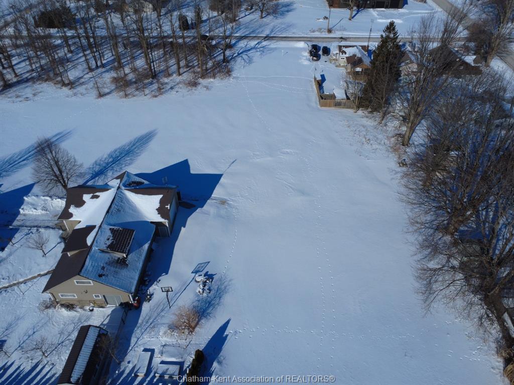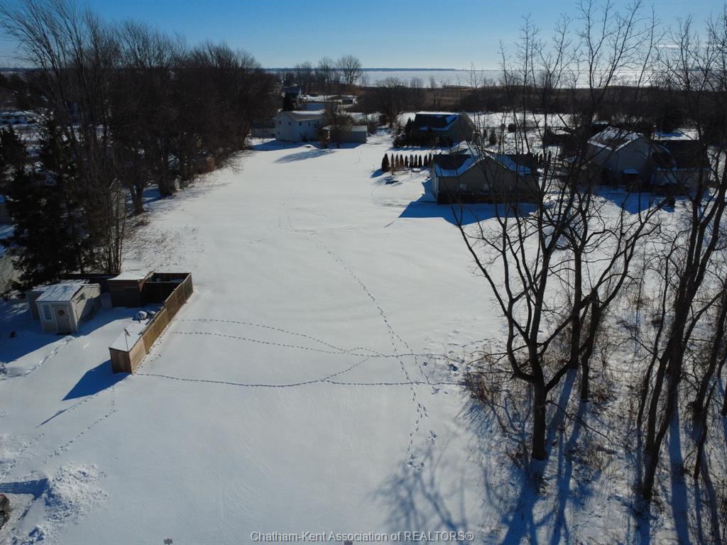 Vacant Lot in the village of Shrewsbury. This lot is nearly an acre (0.93 acres) & located close to the free public boat launch at Rondeau Bay with access to Lake Erie. This area renown for fishing, boating, duck hunting, and watersports - a naturalist resort! Buyer to verify all approvals for building, including permits, and any associated development charges, costs and fees associated with building, including municipal water and natural gas. (The neighbouring properties are connected to gas, water and hydro). There is a 20 ft lane/alley on the west side of property which is municipally owned. Historically these alleyways have been purchased to add to existing lots which would enhance the subject property with the extra 20' width. Road access from Metcalfe has 58' then widens out to 104'. See photo of overhead map shows the L shaped lot with approx. 418' depth.